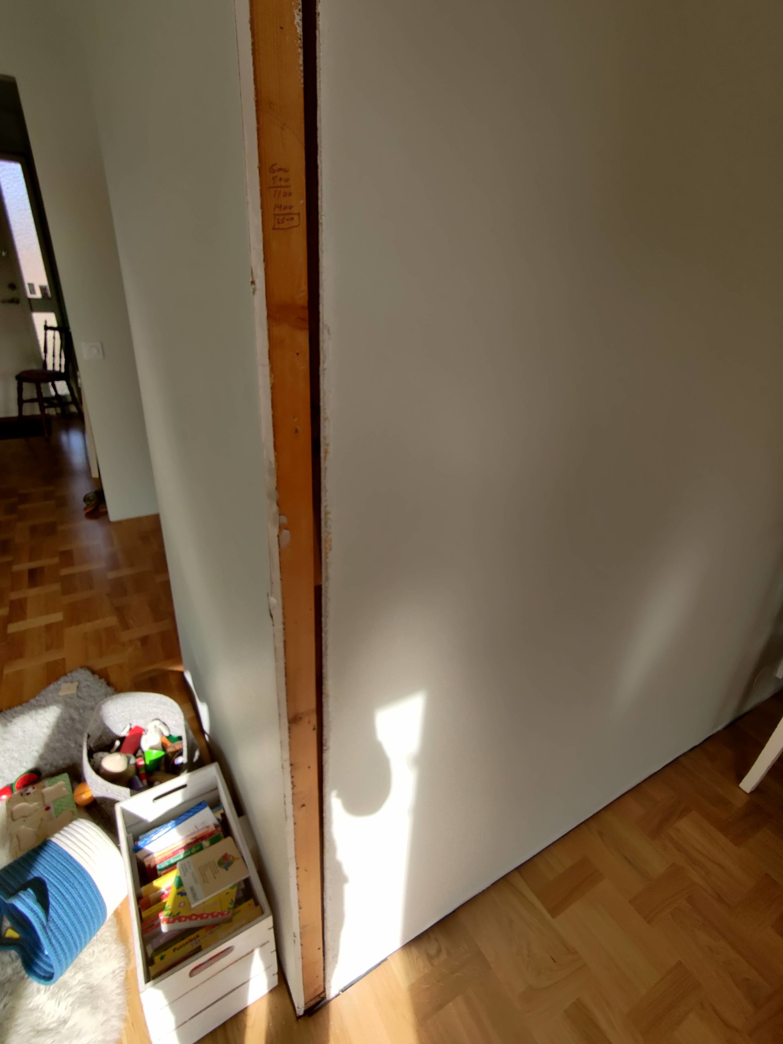 3. Eller finns annat alternativ för att täppa igenom glipan så att jag kan skruva karmskruv där? Väggarna är precis spacklade och målade så jag är inte så intresserad av behöver ta ner gips och sätta in nya reglar..
