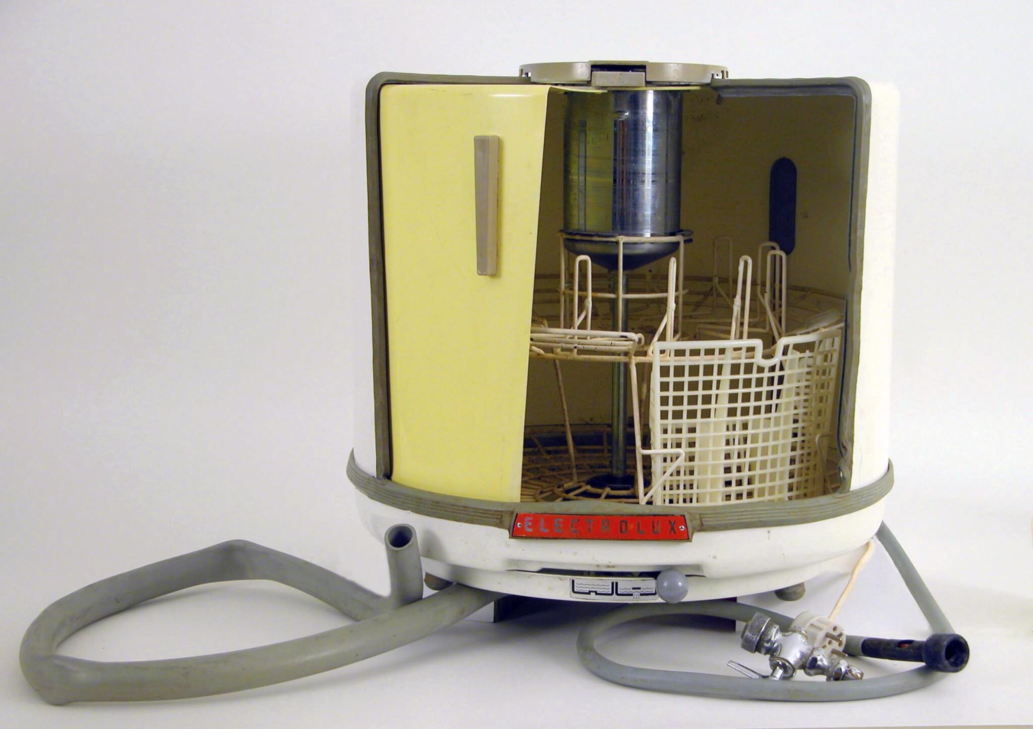 Korgen med disk roterade och vattenrören med sprutmunstycken var fasta. Skramlade som sjutton.