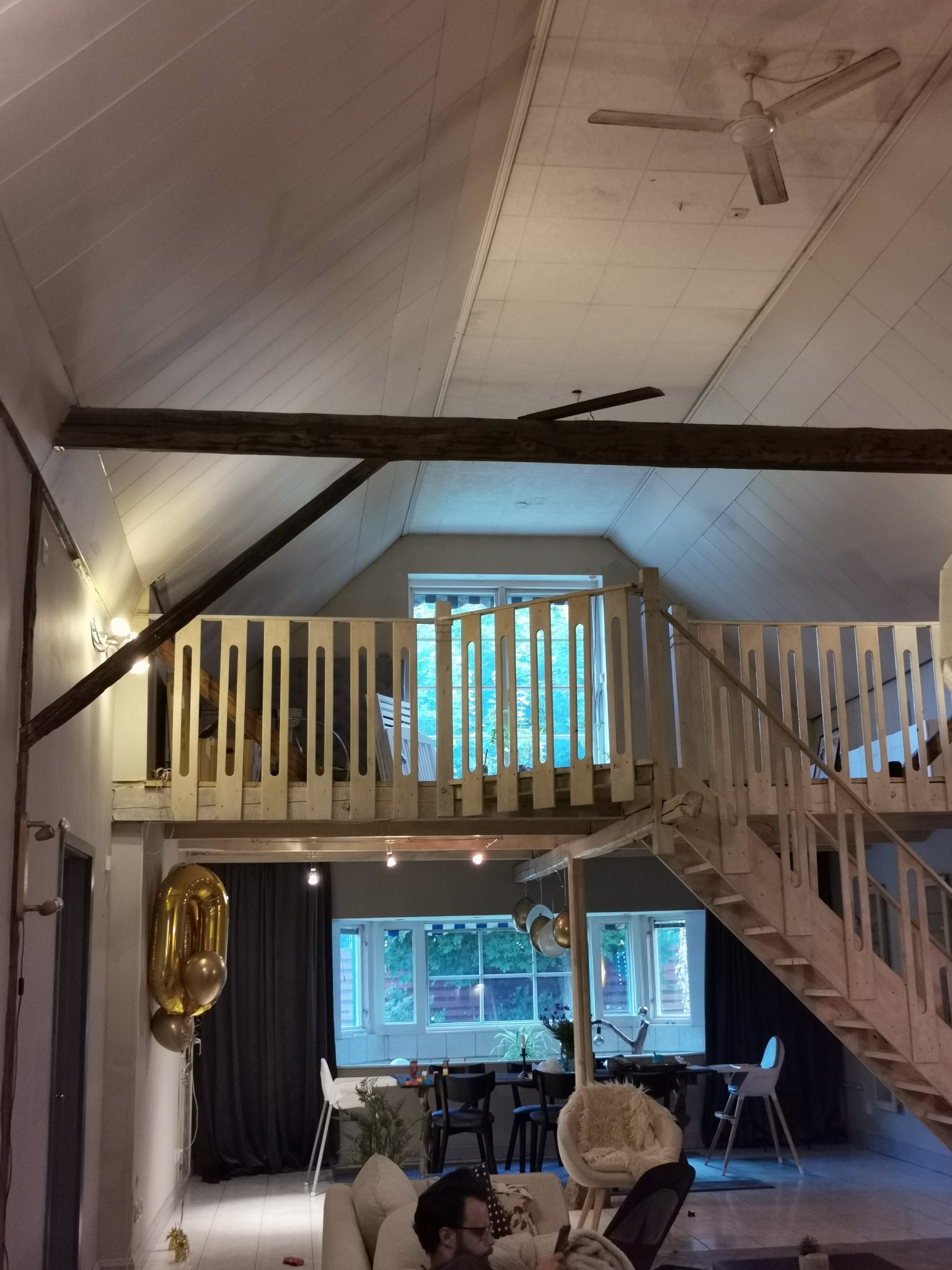 Men han har ju då lagt dessa frigolitplattor överallt i huset. I stora hallen (vilket vi får säkert göra liknande som i köket).... Men till det värsta. Vardagsrummet, är jätte högt i tak mellan 5-6 meter upp. I mitten av taket har idioten lagt frigolittak, på sidorna är väl vanliga takplattor av nått slag. Vi hade ju en idé när vi köpte huset att vi skulle göra träpaneltak..