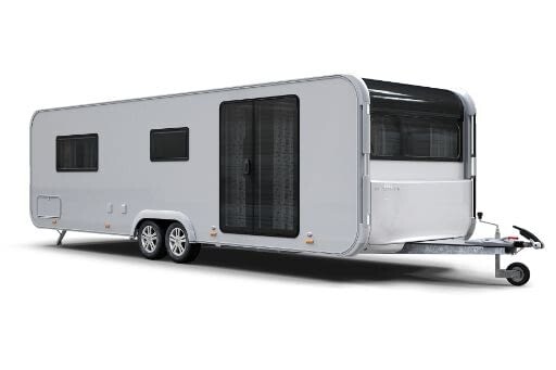 Tänk er den fetaste husvagnen från Adria, den med stora konstiga fönstren och sen kapa bort underredet och sätt en tälthall uppepå.