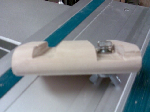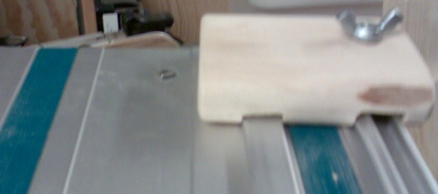 Lite finputs med sågra små filar efter så löper den OK på skenan. Skruven på stoppet sitter i en muter som löper i spåret så hacket jag gjode utanför spåret påverkar inte hur stoppet sitter fast.