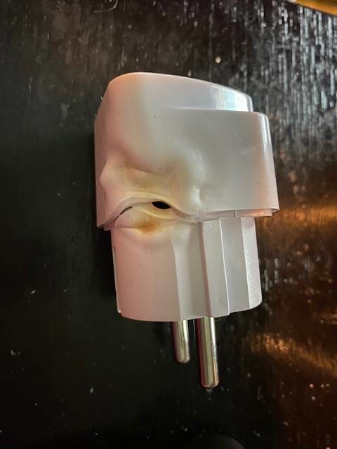 Har du läst inlägget? Adaptern fick uppenbarligen kortslutning, blev varm och löste ut säkringen. Är det då tur att TS kände lukten? Det kvittar väl fullständigt i det här fallet.