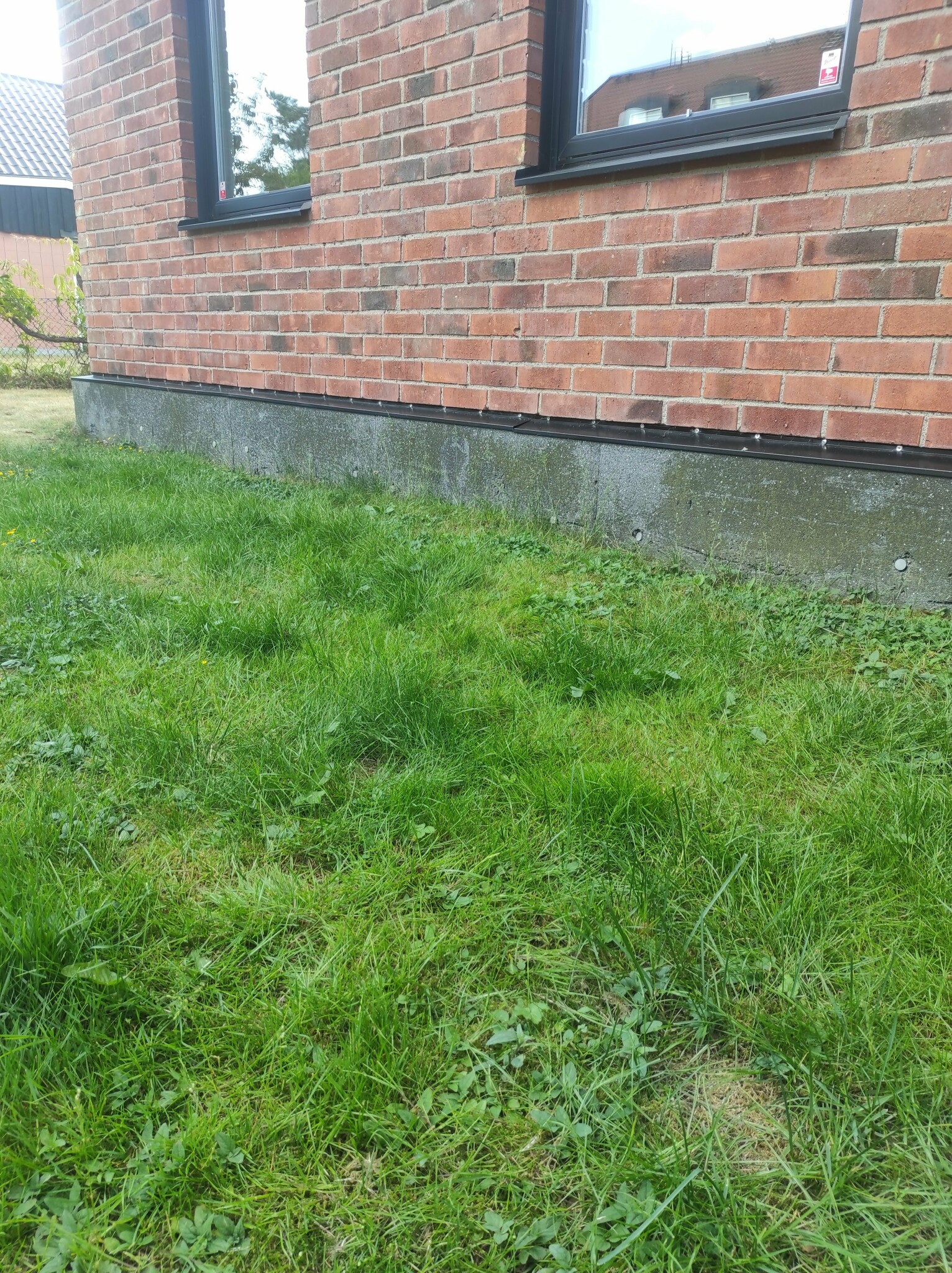 Jag har nyligen flyttat in i ett hus där grunden är inklädd med frigolit. Frigoliten är oskyddad och tar skada om man kör in gräsklipparen och liknande i den. Vilka alternativ finns det för att klä in frigoliten? Går det att limma fast sockelskivor? Blir det bäst att köra putsbruk istället?