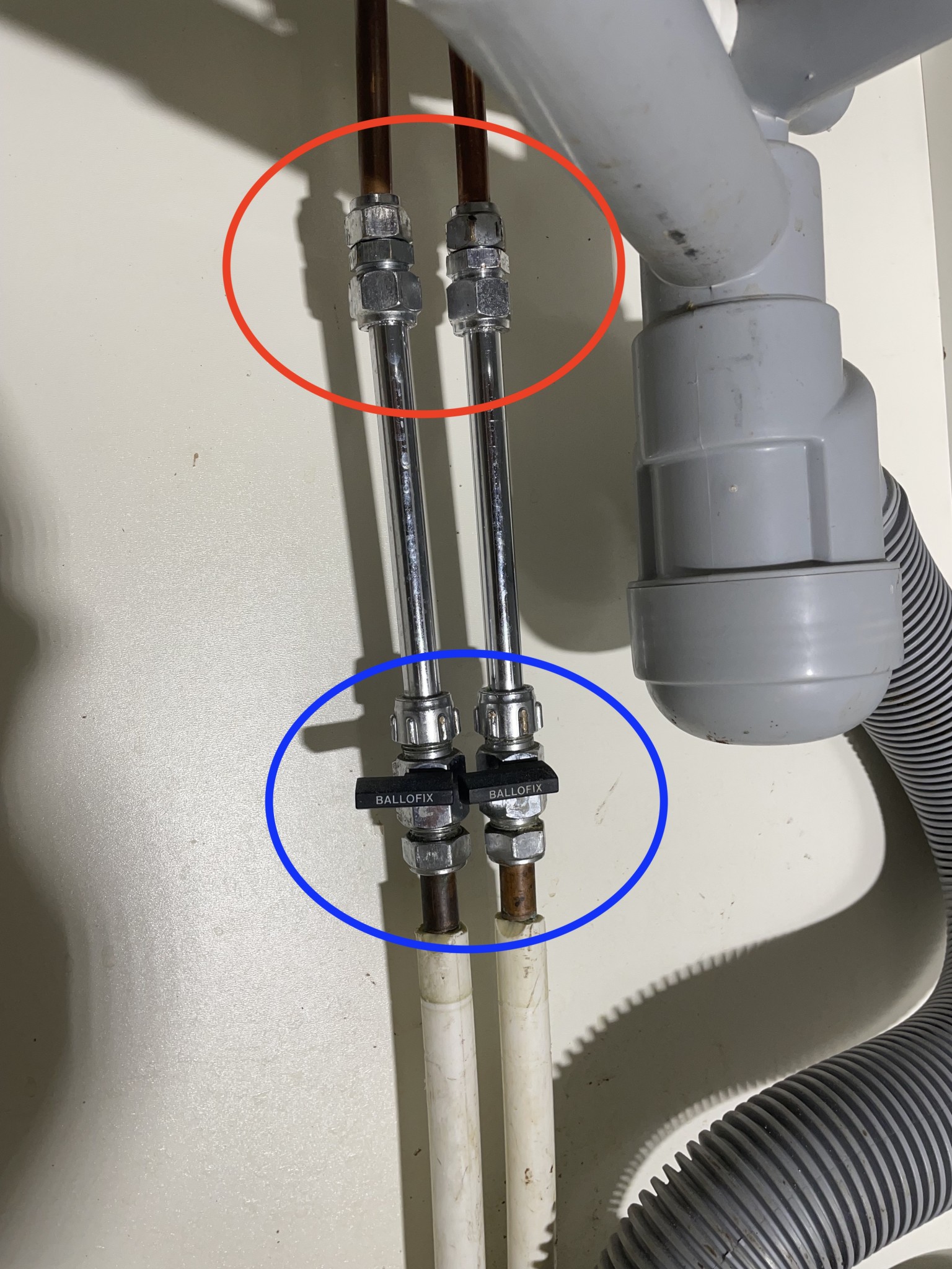 Okej så bättre att plugga ovanför ballofixerna säger du? Eftersom jag inte kan stänga av vattnet helt tänkte jag att det var mer "säkert" att ge sig på koppling ovanför. Tänker att det finns en risk att något går sönder när man ger sig på ballofixkopplingen om det är gamla grejer, men det kanske är överdriven aktsamhet?
