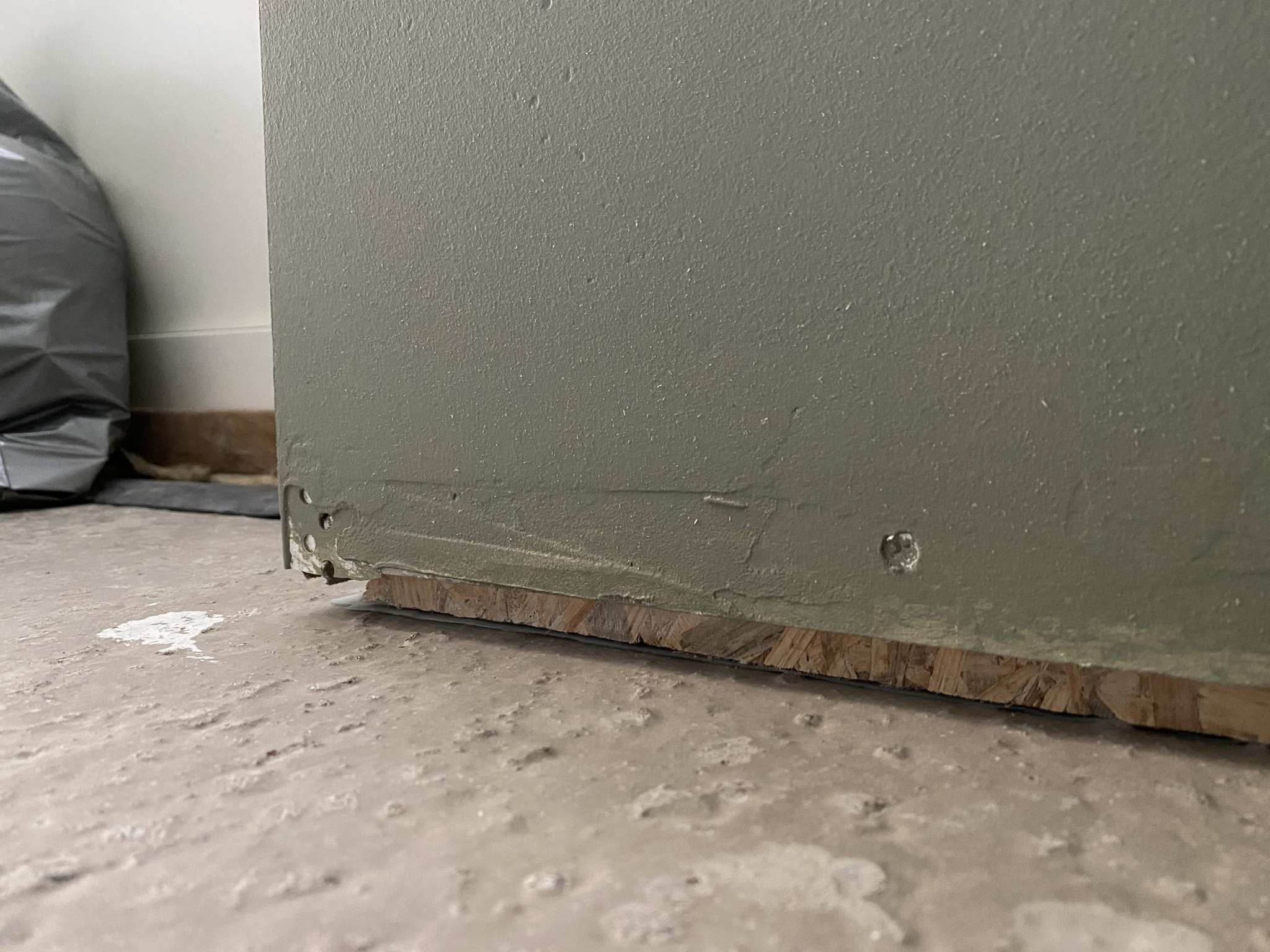 Mest orolig/nojig för framtida fukt/mögel-problem i väggen pga att fuktig inomhusluft letar dig ut i yttervägg i glipan mellan vägg/golv pga att jag skar av plasten.