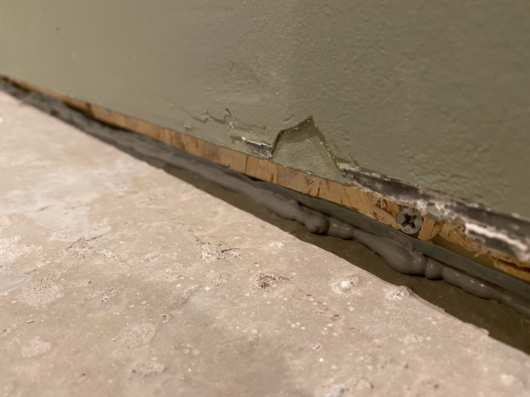 Eller ska jag försöka såga upp 1-2 cm av väggen i nederkant för att komma åt diffusionsspärren och försöka foga fast /täta den med butylfog i betonggolvet?