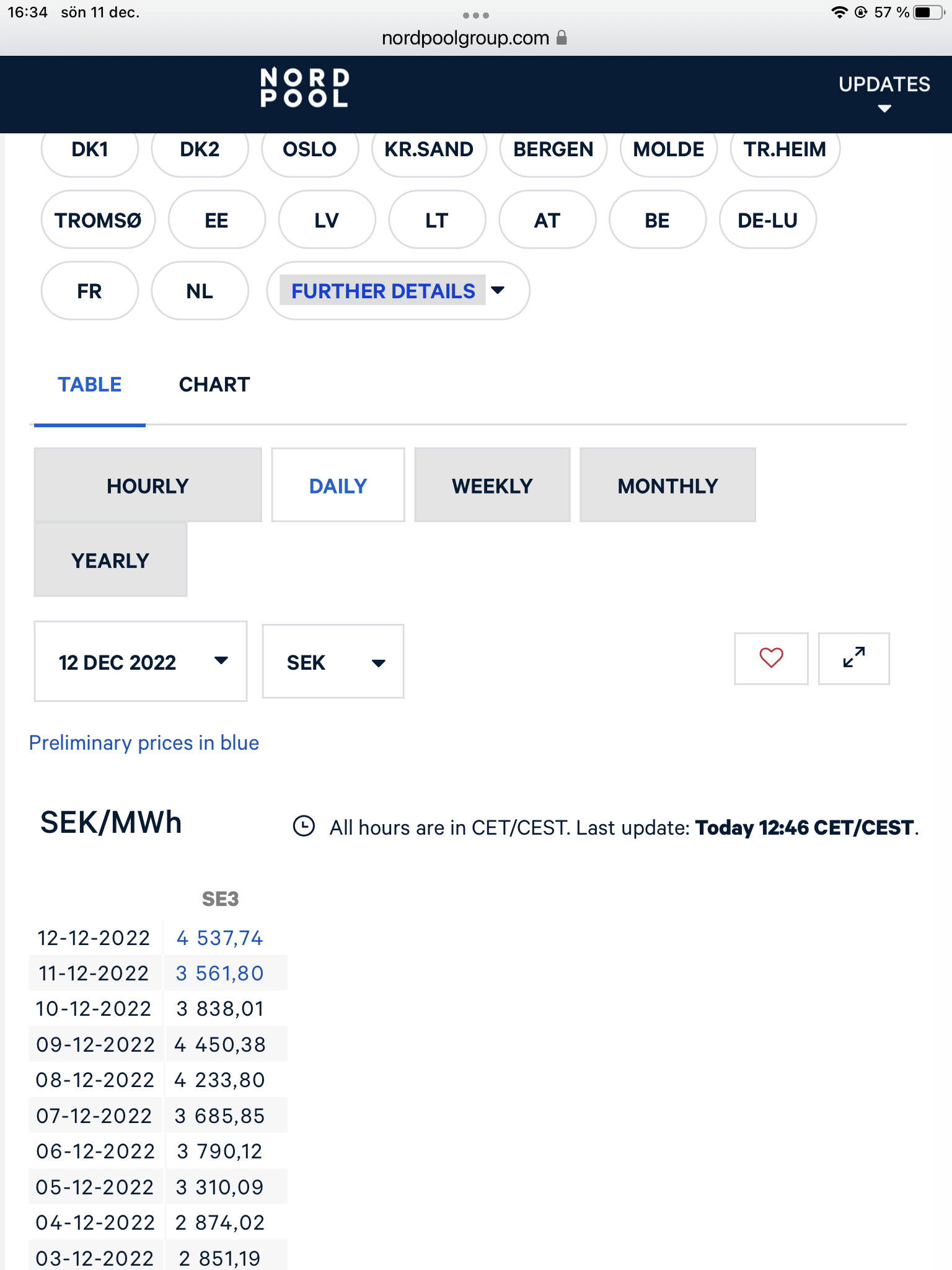 Nja, prissättningen är väl officiell runt kl.13 för nästkommande dygns priser. Så 11tim innan så har vi facit för kommande dygnetZ Zodde skrev: