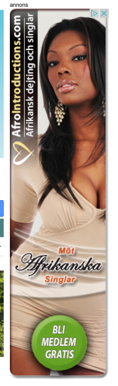 Okej! Jag ska förtydliga vad jag trodde var uppenbart: Det jag tycker är förnedrande med reklamen är att den marknadsför på ett mycket nära pornografiskt vis, och idag är det typ rea i källaren på kvinnor från Afrika. Var på bilden sitter "medlemsknappen" man ska trycka på? Är det en tillfällighet? Jag får inte intrycket av att det är en datingtjänst som marknadsförs utan något helt annat.KnockOnWood skrev:Vad är det som är förnedrande?