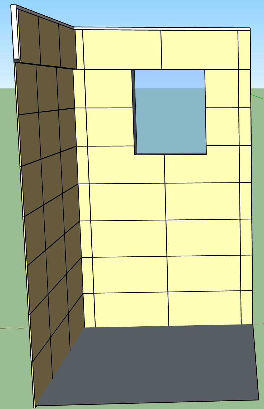 Inser nu att det inte alls blir bra att bara börja nere till vänster. Förutom osymmetri så blir det två små bitar höger om fönstret.
