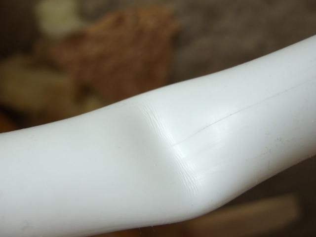 OK, röret vart ganska lealöst, fortfarande helt vitt. Kanske värmde jag för lite på sina ställen och för mycket på ovansidan. Som du ser på bilderna ovan så är det nästan helt runt efteråt.