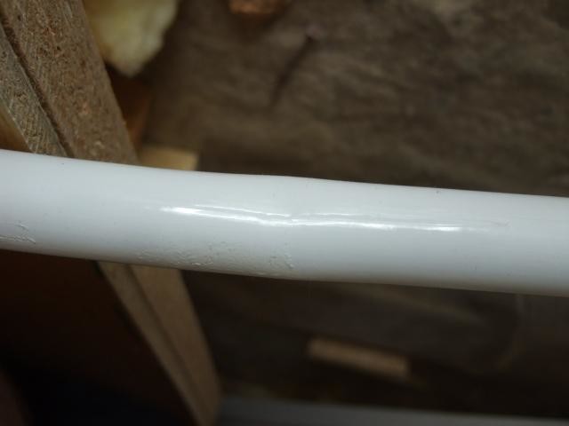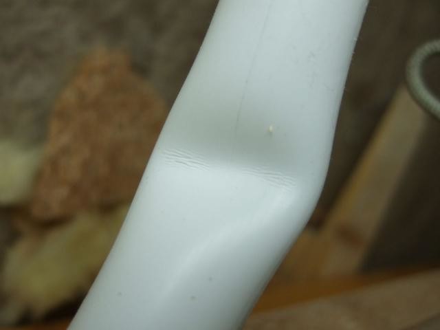 Nu har jag kommit åt röret bättre och kunnat titta på det ordentligt. Det Jag ser inga sprickor i det, däremot har materialet mossats ihop i innerkröken, se bifogade bilder.