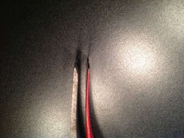 Den där är tunn längst fram med en vinkel, sen tjock.