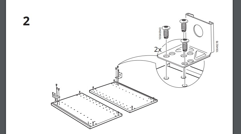 Nej, jag tänkte på precis samma Ikea-vinkeljärn som de två som sitter i de två övre hörnen (som jag i tidigare inlägg klippt in från monteringsanvisningen). Och alltså sätta sådana i de två nedre hörnen också, inuti skåpet.