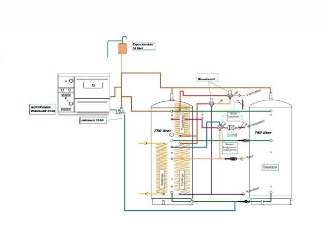 Ny kökspanna på 23kw, två tankar på 750 liter och en laddomat 21/60.