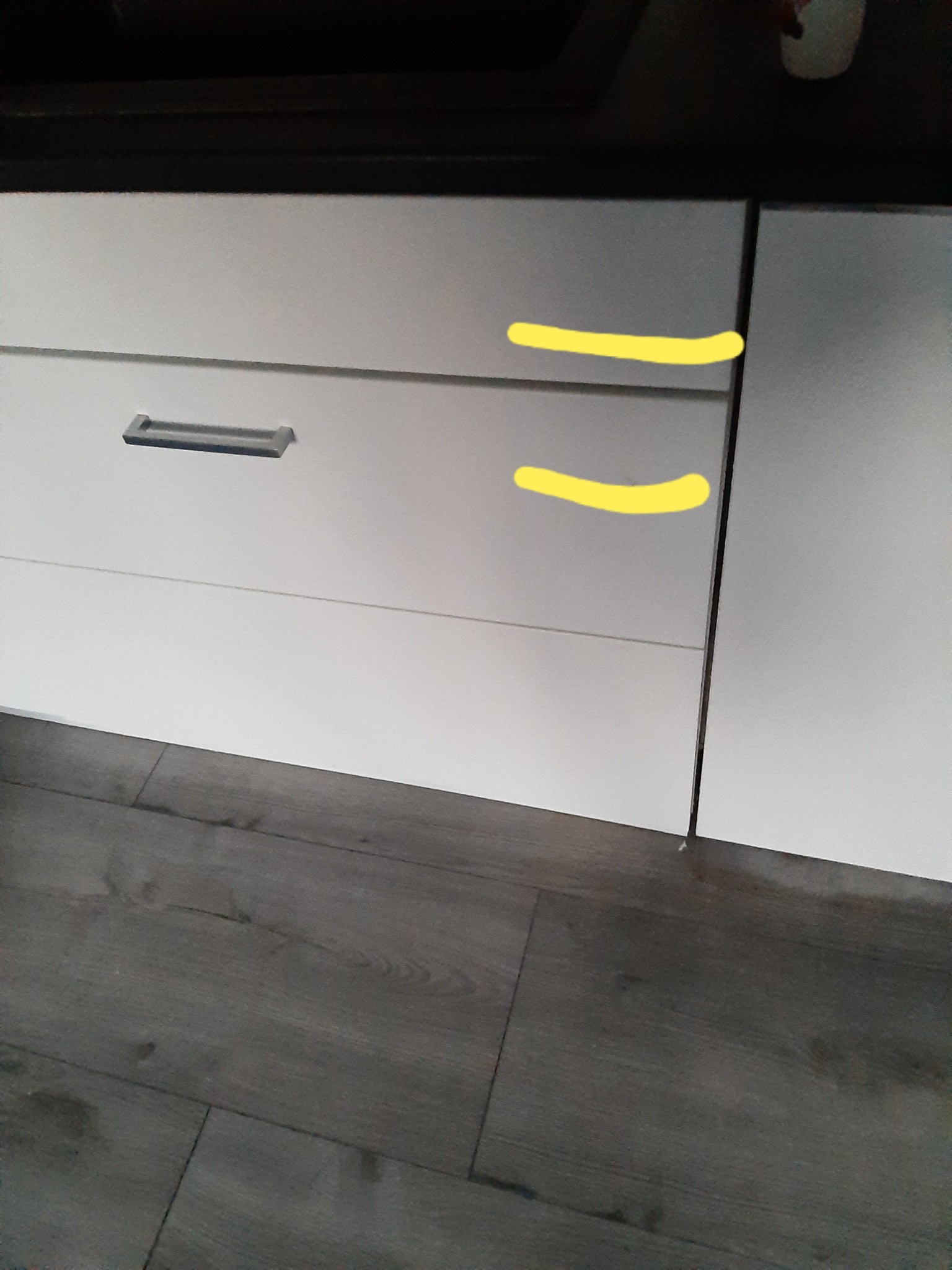 Renoverade köket och detta är slutresultatet - efter att dom fått göra om en del saker till och med. Enligt dom är dom färdiga och dom menar på att vi ej bör vara mm petiga. Bifogar bilder på några av de fel som vi hittat och som dom alltså inte kunnat åtgärda. Detta handlar inte om mm utan är synliga fel. Tycker detta känns ok för ett helt nytt kök.
