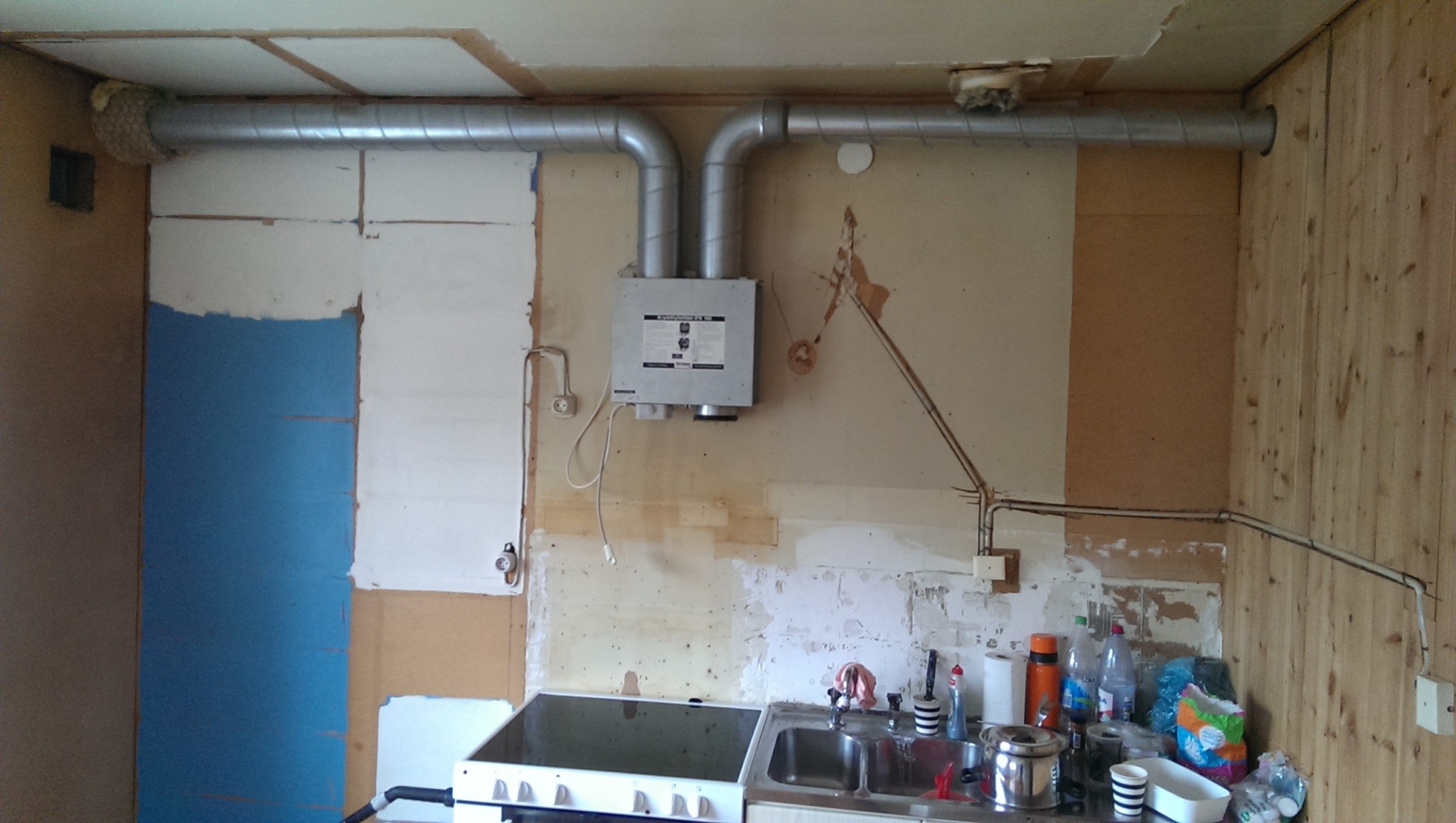 5. Dra ett rör från badrummet och ut till ytterväggen och ett från spisfläkten och till ytterväggen.