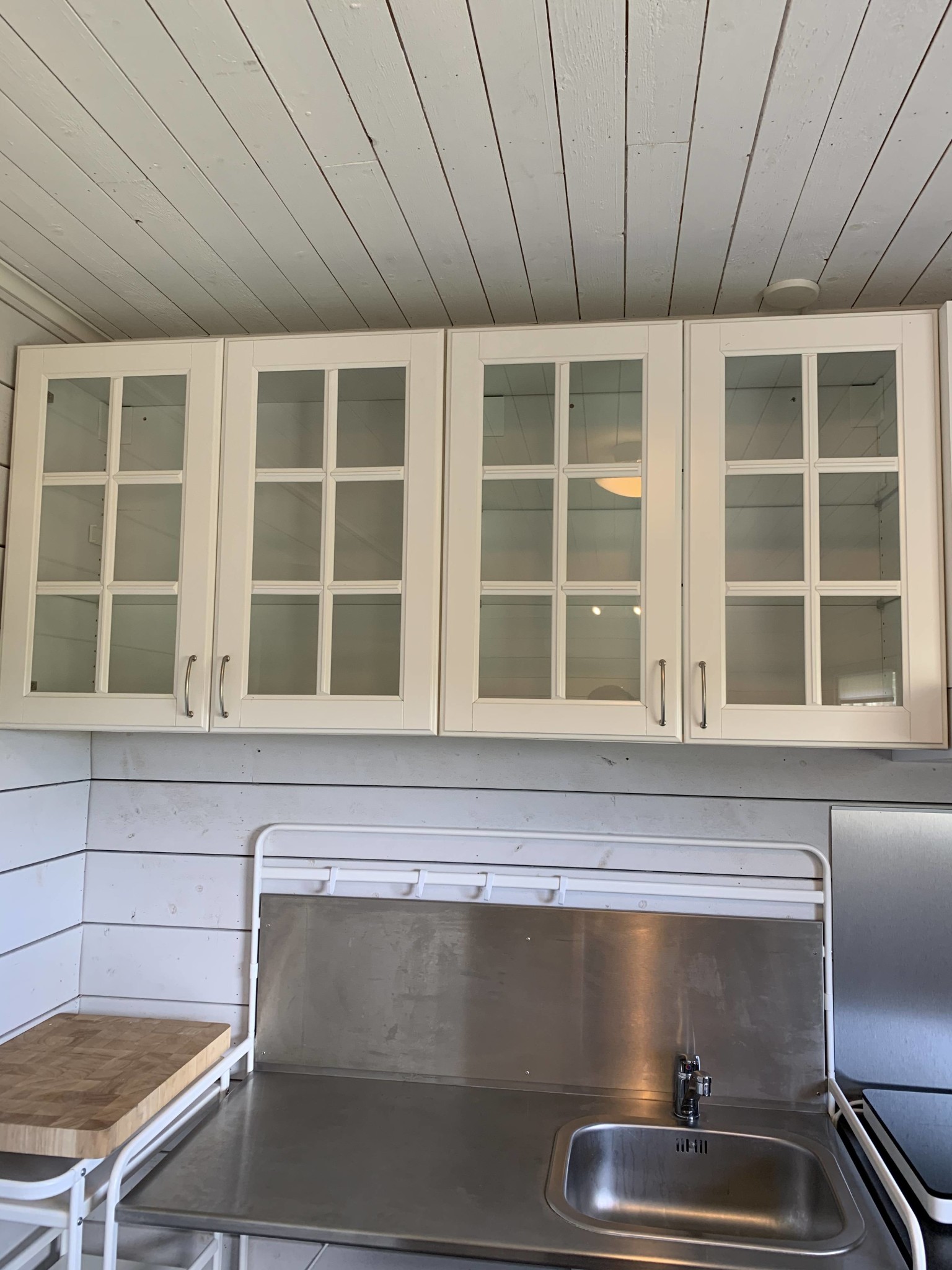 Köksskåp med glasluckor gammal stil. 500kr inkl luckor / glashyllor. Använt i 2år. Finns att hämtas i Södertälje.