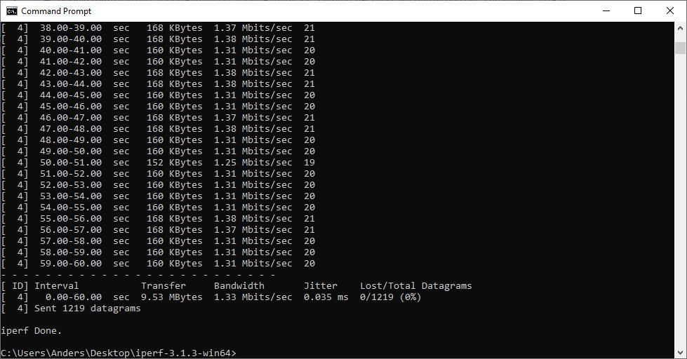 Jag testade iperf med fabrikskablar, med 1000mbit setting får jag alltid runt 0.1% eller så packetloss dock med default settings så ger den noll packet loss.lars_stefan_axelsson skrev: