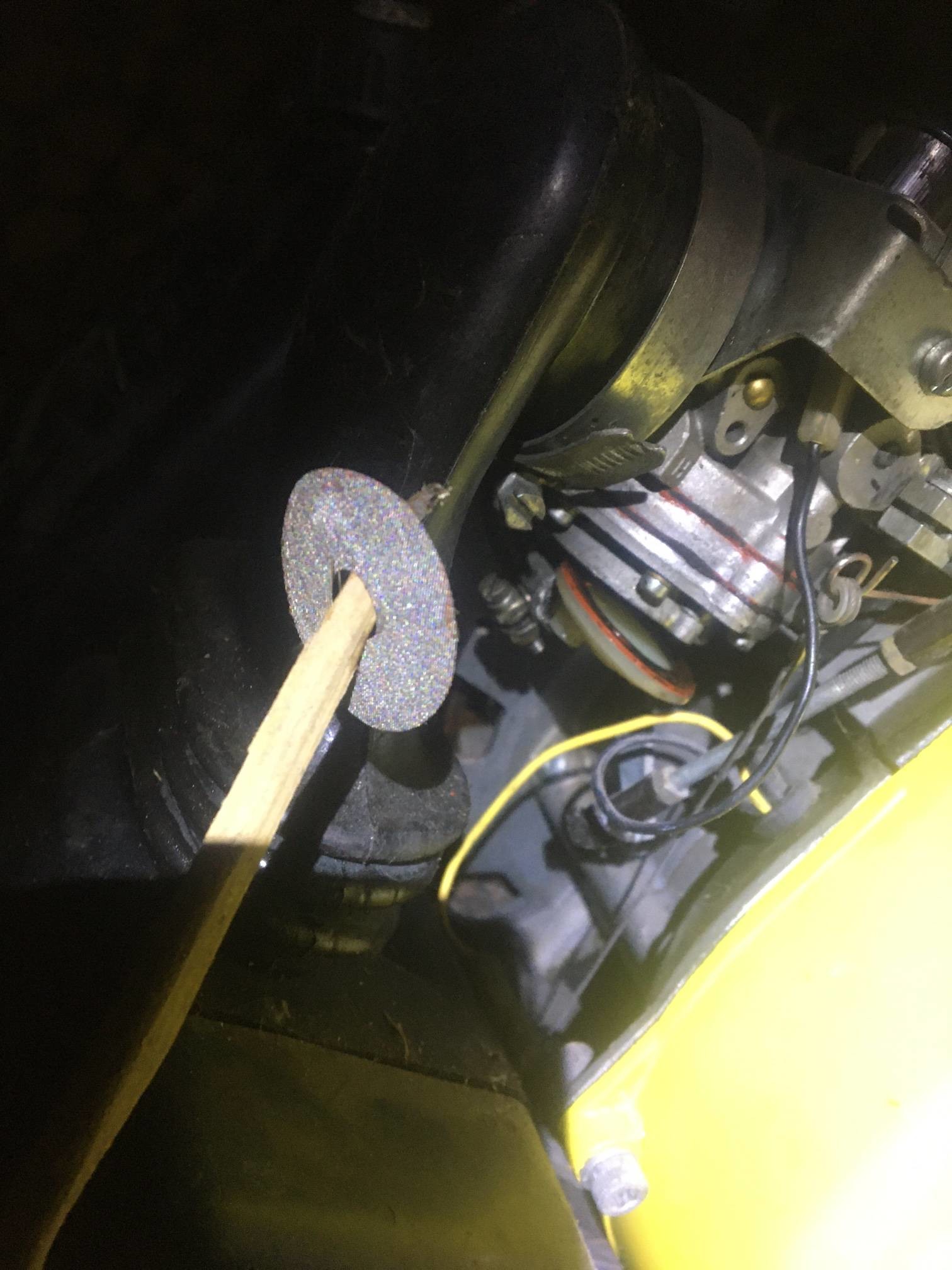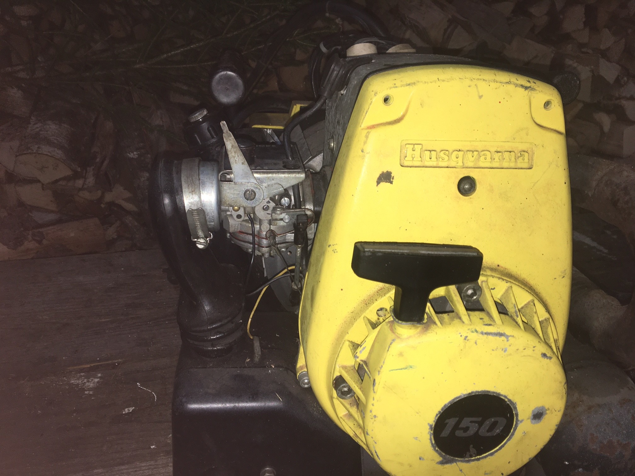 Så första steget är att kolla så membranen är hela och fina (inte sladdriga), dom sitter innanför där slangen går in, ett antal skruvar runt som du måste lossa. Det är likadan motor som Sno-Tric SC3 och Larven skotrar hade (först 150 med tändpsole innanför svänghjulet, sen vlev det 160 efter nåt år med extern tändspole), även vattenpumpar och elverk har funnits med denna motor. Förgasartypen är Tillotson.