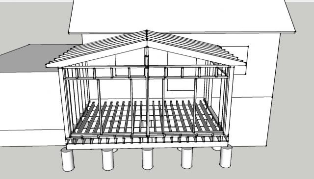 Tror ni vikten av taket kommer trycka ut den högra väggen? På vänster sida byggs det ihop med ett garage.