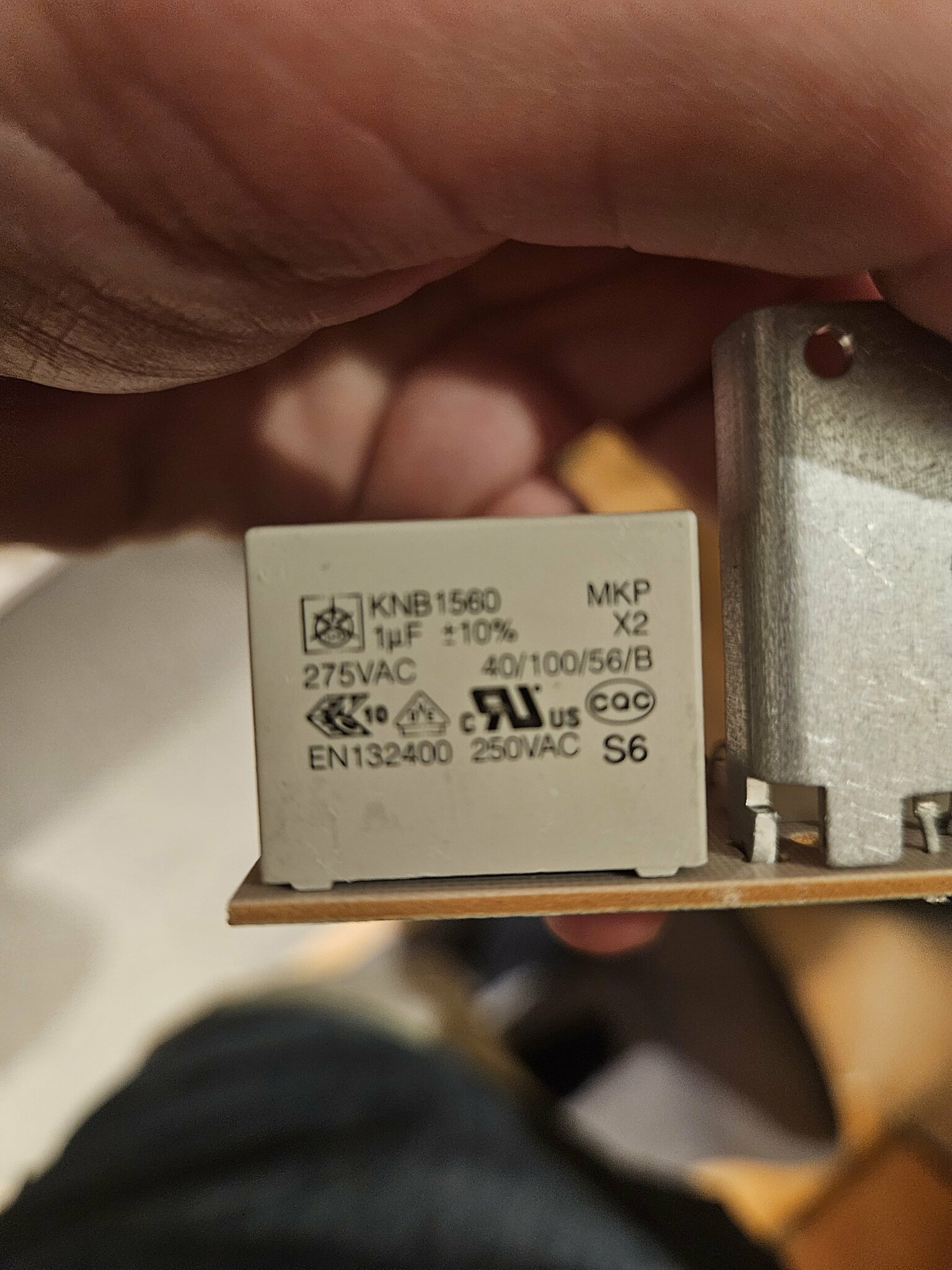 Jag sitter nu med samma fel som denna användare upplevde. Jag har däremot redan beställt och bytt båda X2 kondensatorer.
