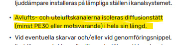 - Isolera ventilationsrören i hela sin längd med diffusionstät kondensisolering.
