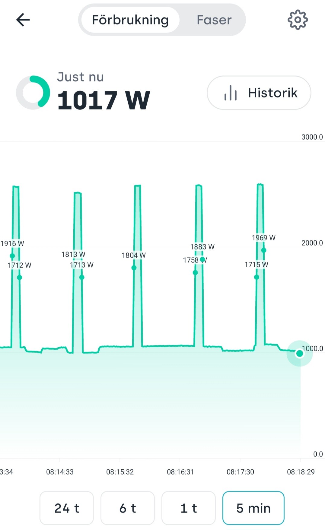 vi installerade ett Systemair VSR300 FTX aggregat för ett par år sedan. Ser nu genom Tibber att elförbrukningen ser skum ut, ska det verkligen se ut såhär? Jag har inte hittat något sätt att slå av värmaren, utan har den inställd på lägsta temperatur (12c). Jag har provat att slå av aggregatet och då försvinner spikarna helt i elförbrukningen. Väldigt tacksam för er hjälp!