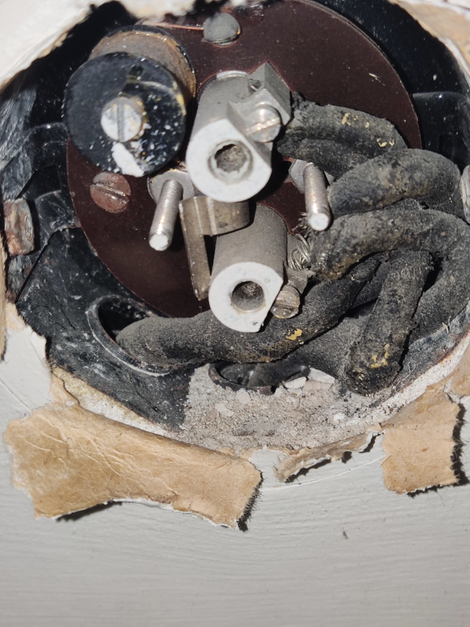 Kablarna är av den gamla sorten typ elkablar som är tyg lindade och svarta.