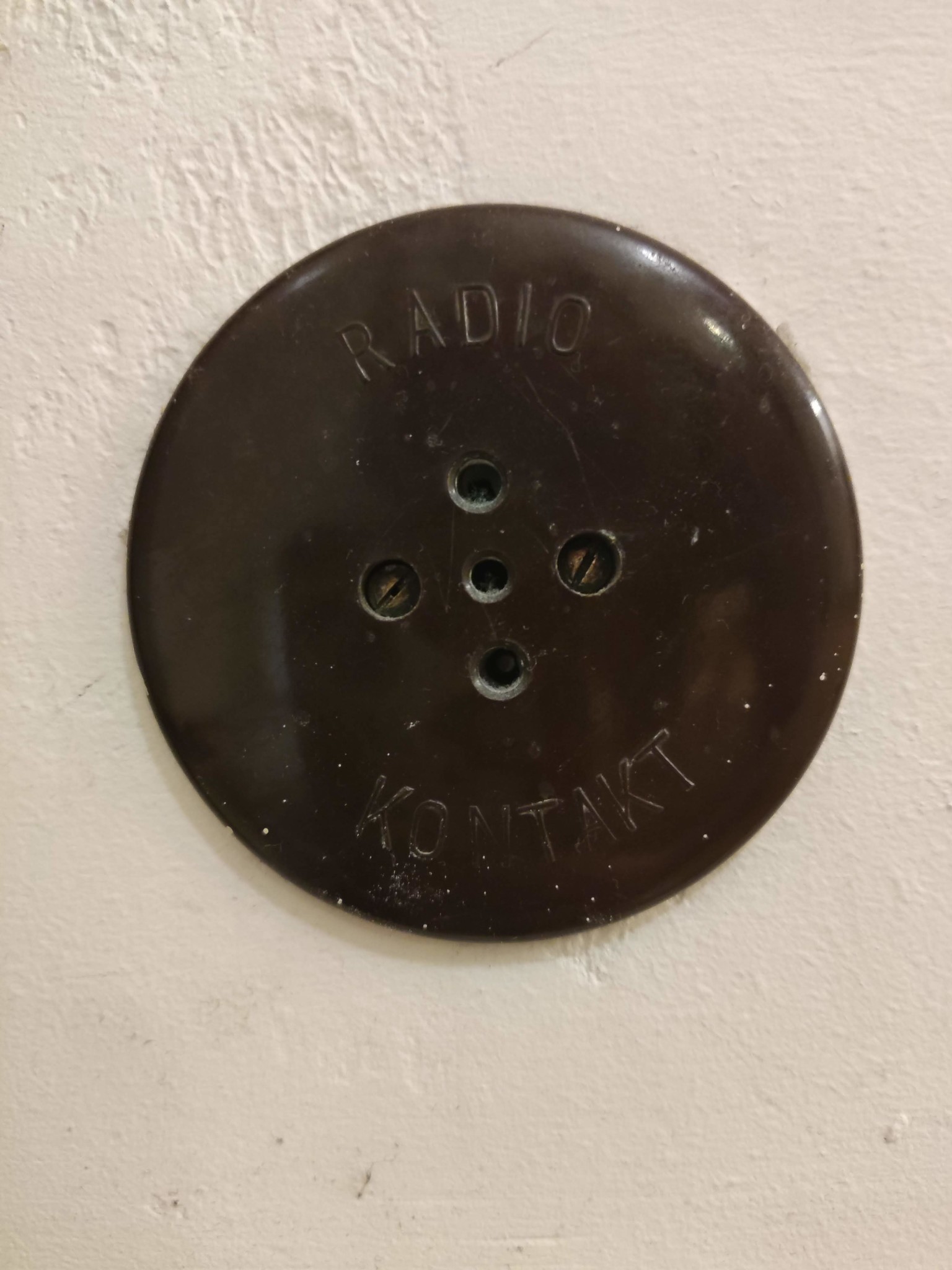 Det går kablar från den ena dosan mitt i lägenheten till den andra i vardagsrummet.