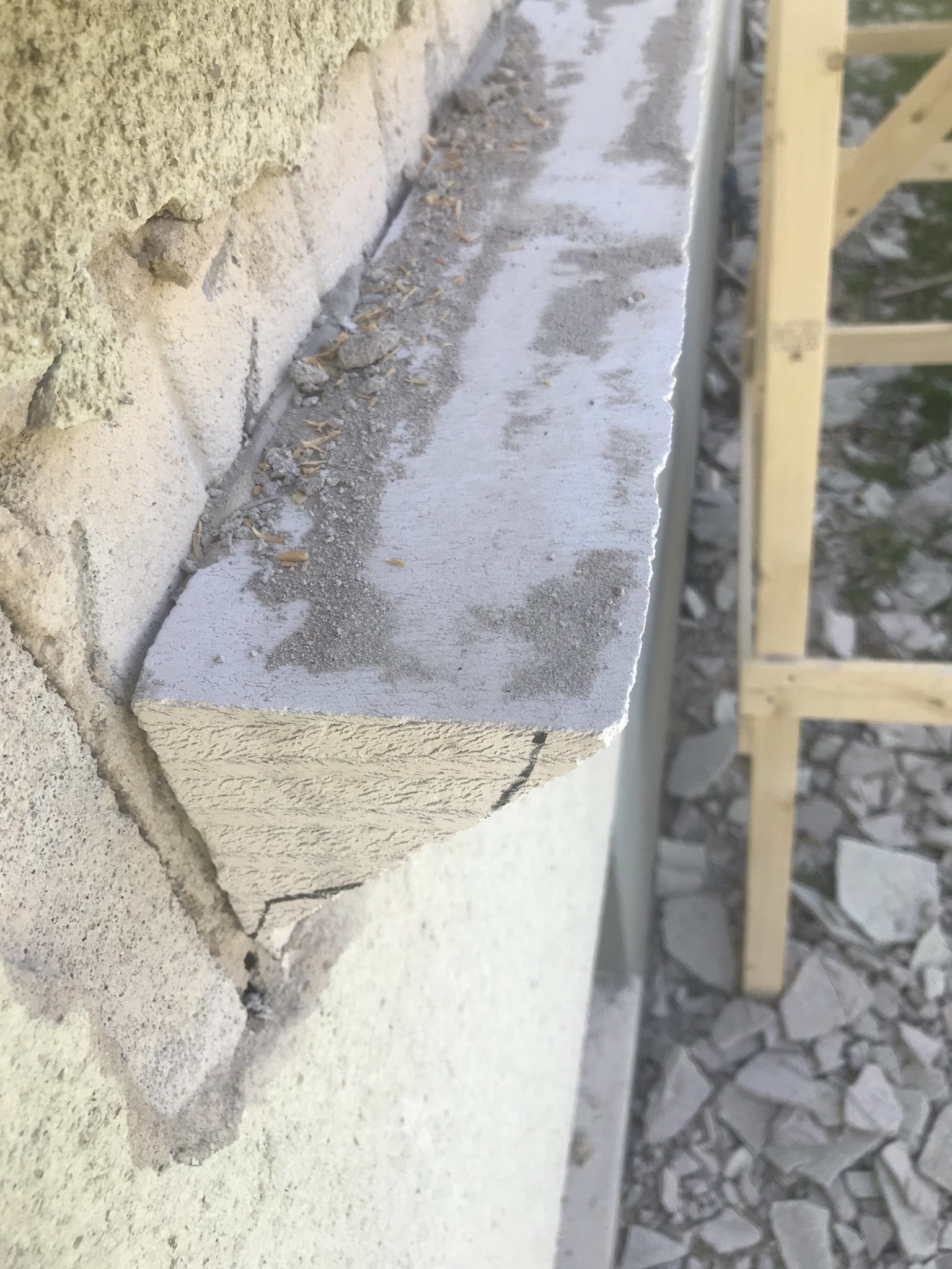 Vi vill försöka få till en gesims likande din men har inte riktigt upplag i muren för att en tegelsten eller lättbetongsten skulle få ett stabilt upplag. Hur gjorde du när du la den sista lättbetongstenen, hade du upplag för den eller skruvade/limmade du fast den på något sätt?