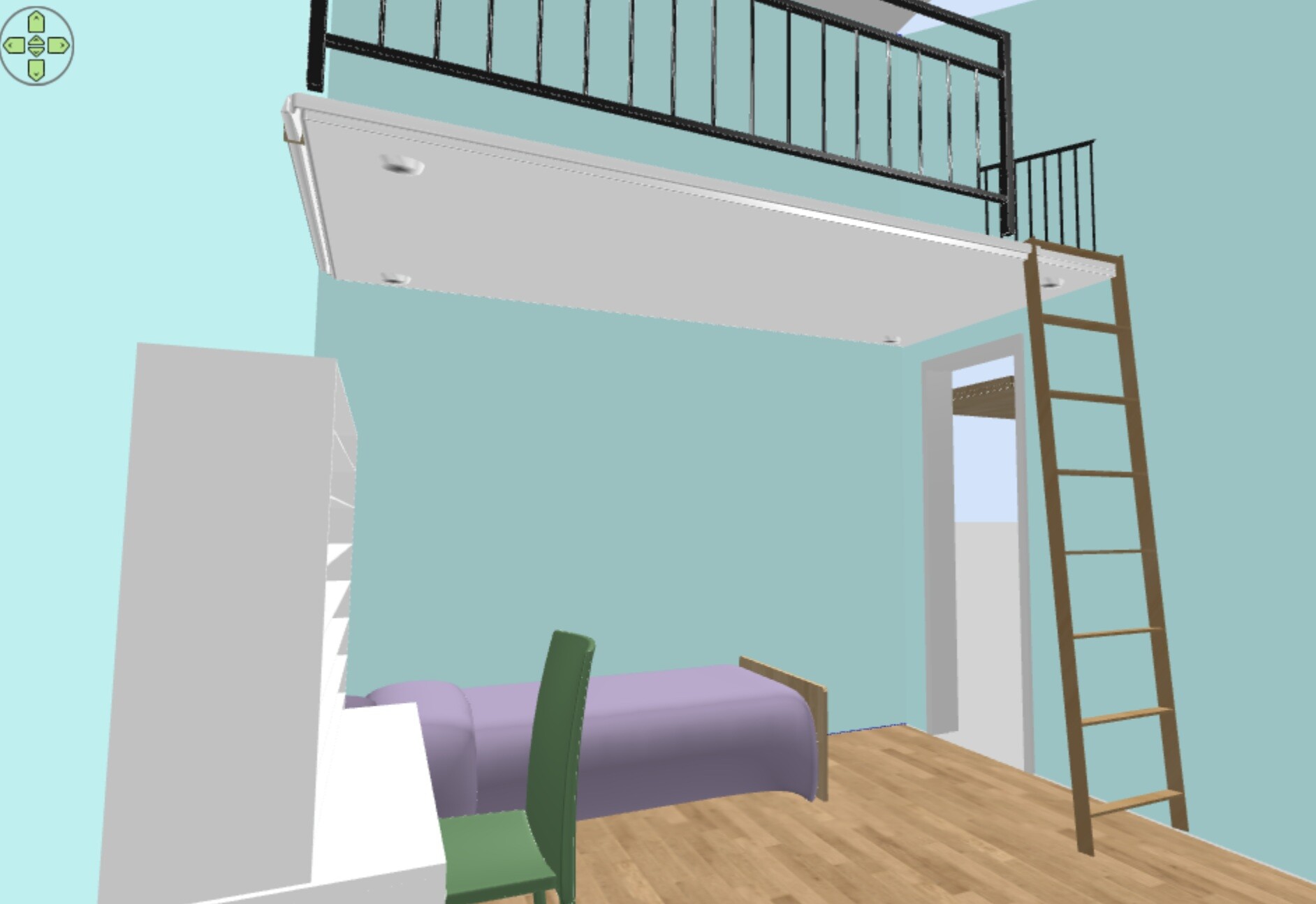 Det är inte spottar som sitter på loftets undersida, det är benen från den flygande säng jag använder som loft i webbversionen av Sweet Home 3D. Jag kom inte direkt på hur man lägger in ett mellanplan.
