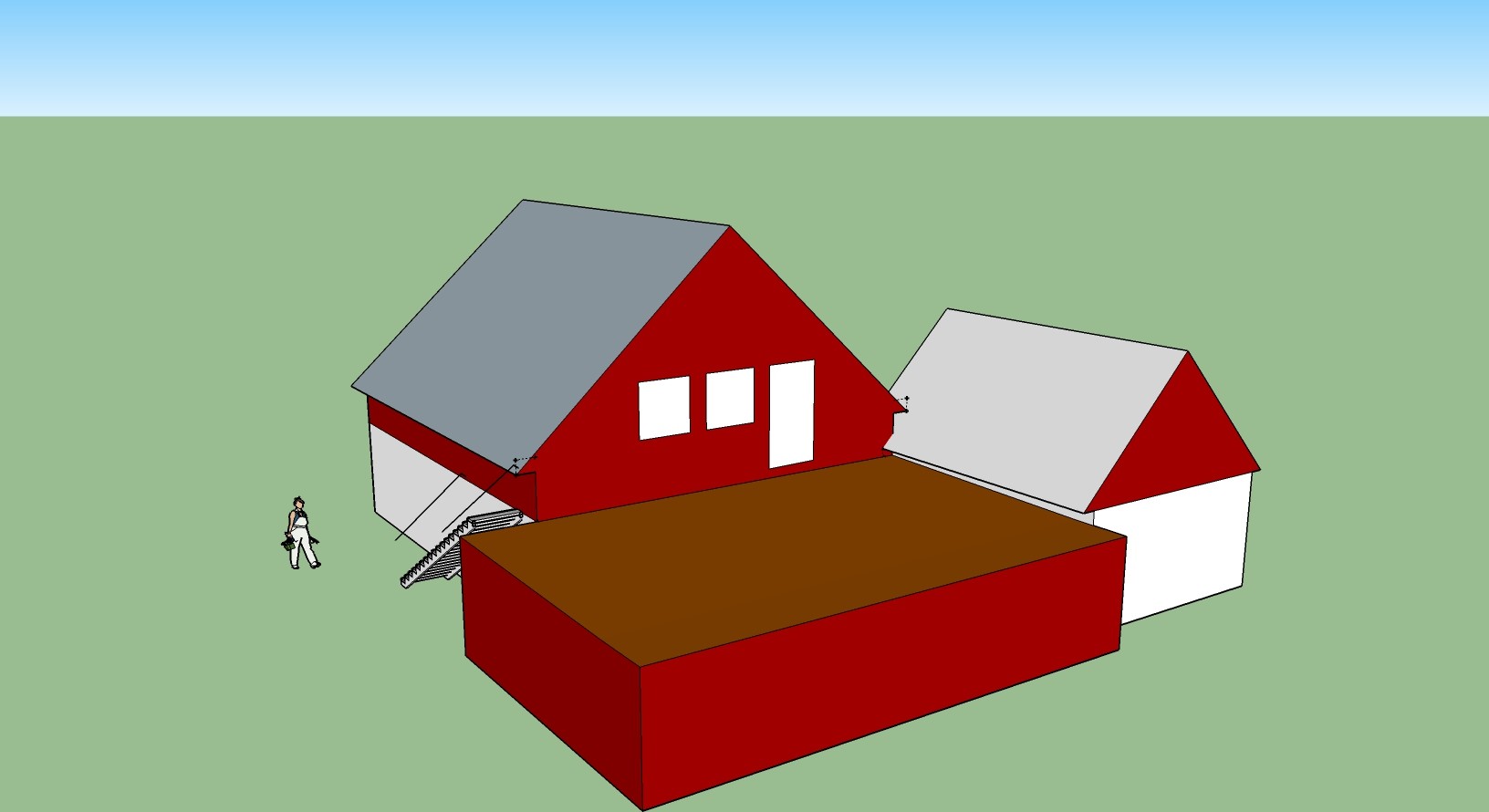 Jag är inte så bra på sketchup så jag lyckas inte rita in plasttaket. Men du förordar ett tak som täcker fönster och dörr kommer det inte se dumt ut tror du?