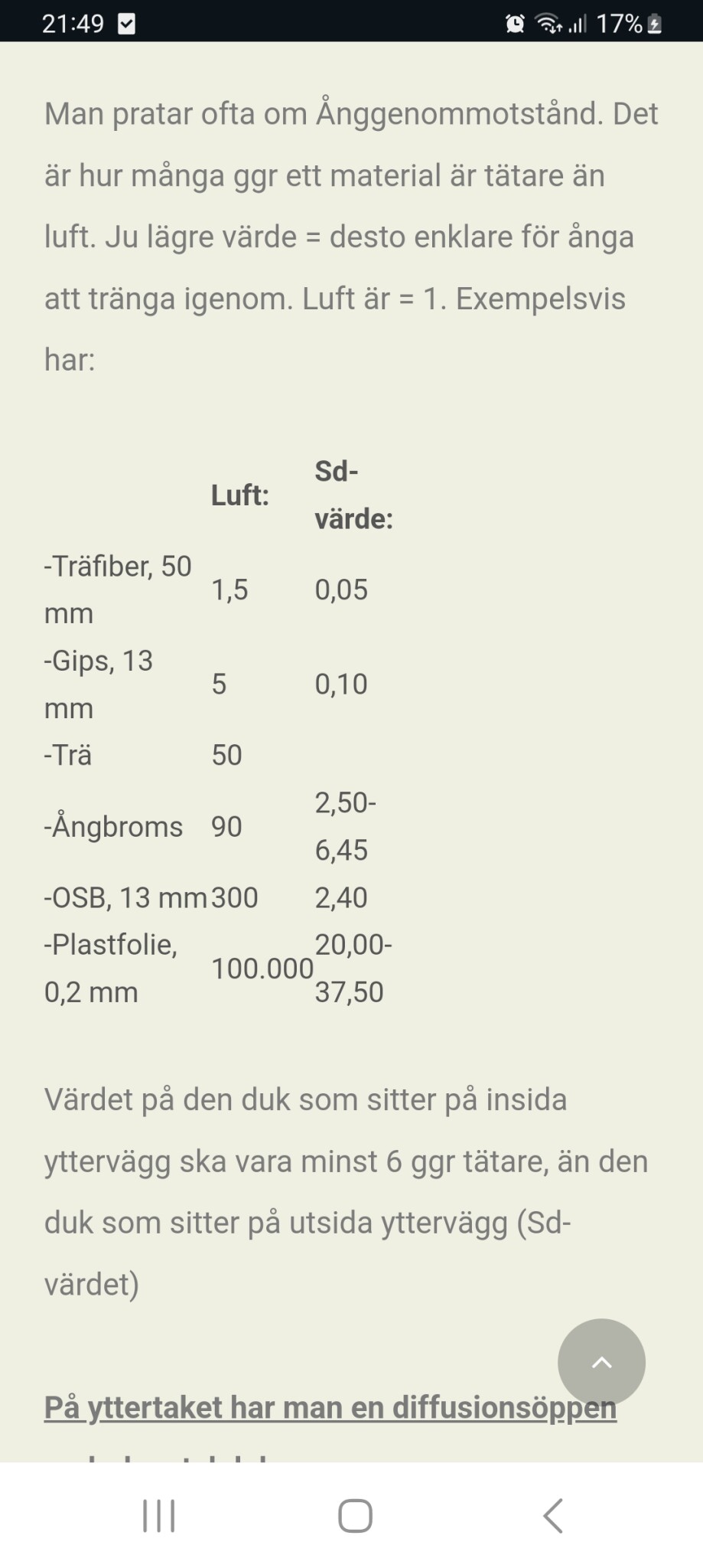 Ångbromsen har en viss genomsläpp av fukt. Det finns flera olika ånggenomgångsmottstånd att välja på. Tex vindtät på utsidan av en bygggnad är en ångbroms som tillåter restfukt i stomen torka ut även när insidan är bekläd med ångspärr.Jasmin Ramovic skrev: