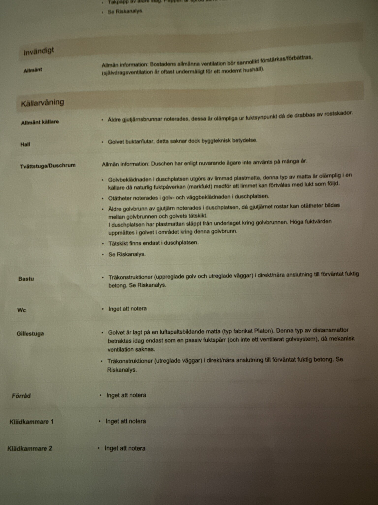 Vi är intresserade av att köpa ett hus, det framgår ur besiktningsprotokollet dessa anmärkningar kring källarplanet. (Se bifogad bild)