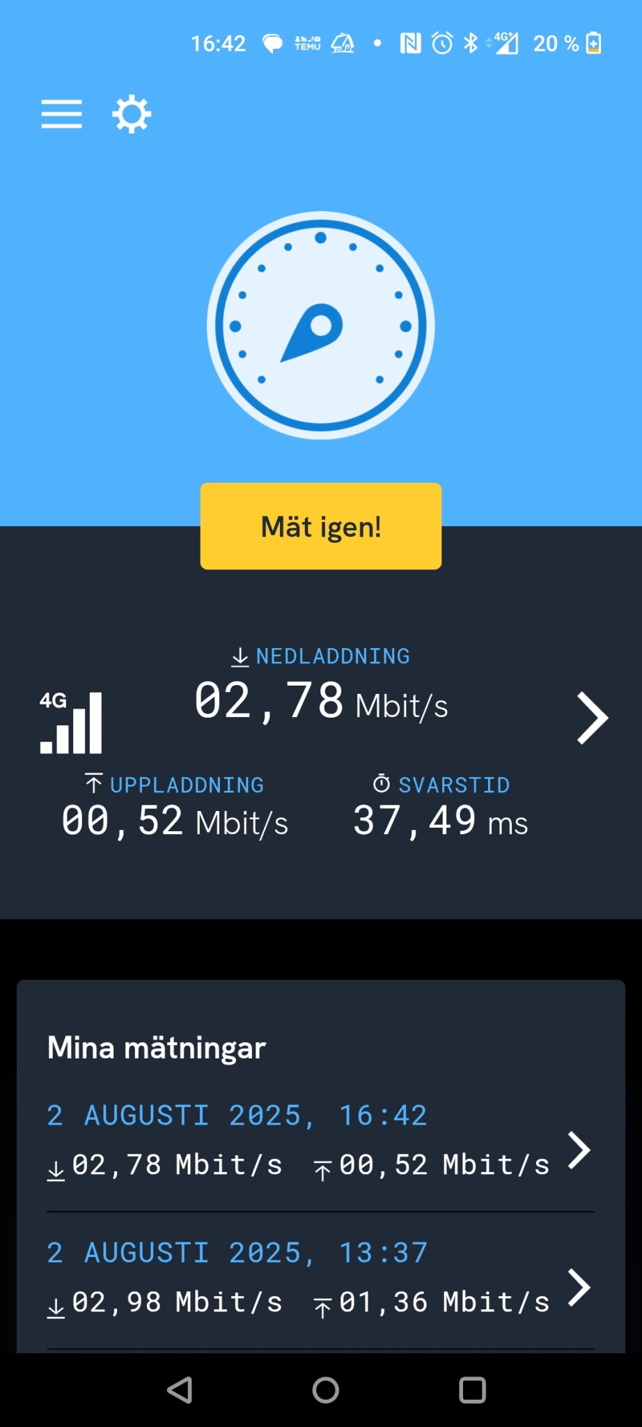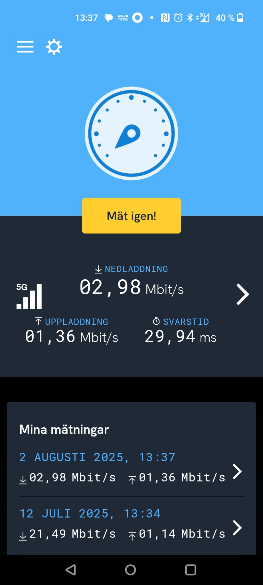 Villa, men jag har ju fiber som fungerar bra. Detta är ytterligare ett exempel på hur man optimerar nätets kapacitet efter normal förhållanden och inte efter de högst belastade tiderna.A A-Man_08 skrev: