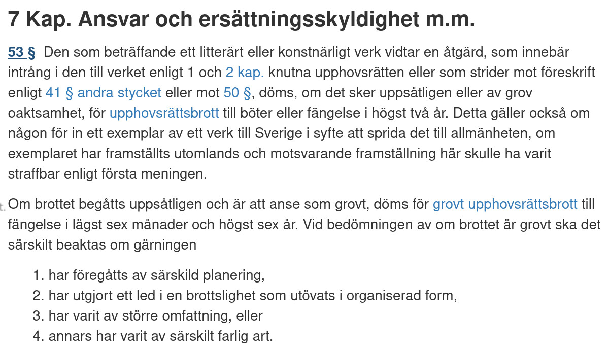 Jag har svårt att komma på en situation när det är applicerbart på just upphovsrättslagen, men det är alltså min generella inställning till lagar.tveksamt skrev: