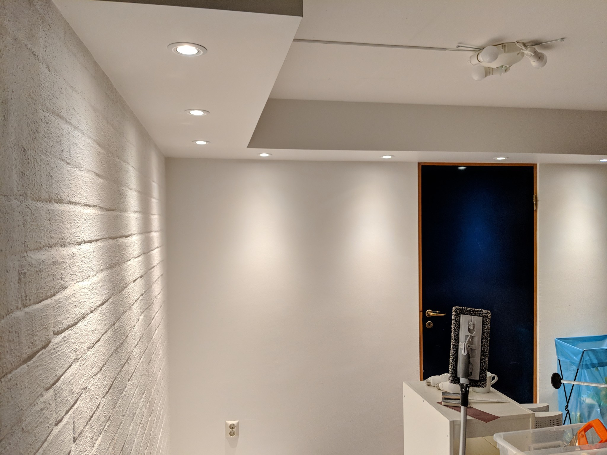 Vi fick nyligen ett FTX-aggregat installerat. Håller nu på att bygga in delar av fläktsystemet i "boxar" (reglar + gips) och tänkte i samband med detta passa på att sätta in LED-downlights i några av dem. Saken är den att ett lamputtag som sitter på väggen, men nära taket, i samband med detta kommer att byggas in i boxen. Detta passar på sätt och vis bra, givet att det är godkänt att dra vidare el från ett sådant lamputtag till downlights.
