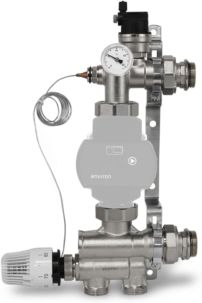 Hej! Har köpt shuntsystem med wilo pico och fördelare till radiatorerna jag skall installera i huset. Detta för att inte skicka ut 95 gradigt vatten från panna utan ta ner det till 60-65. Jag kommer att ha maximalt 6 radiatorer och har därför införskaffat en 7-krets fördelare som bifogat samt blandningssystem med termostat.