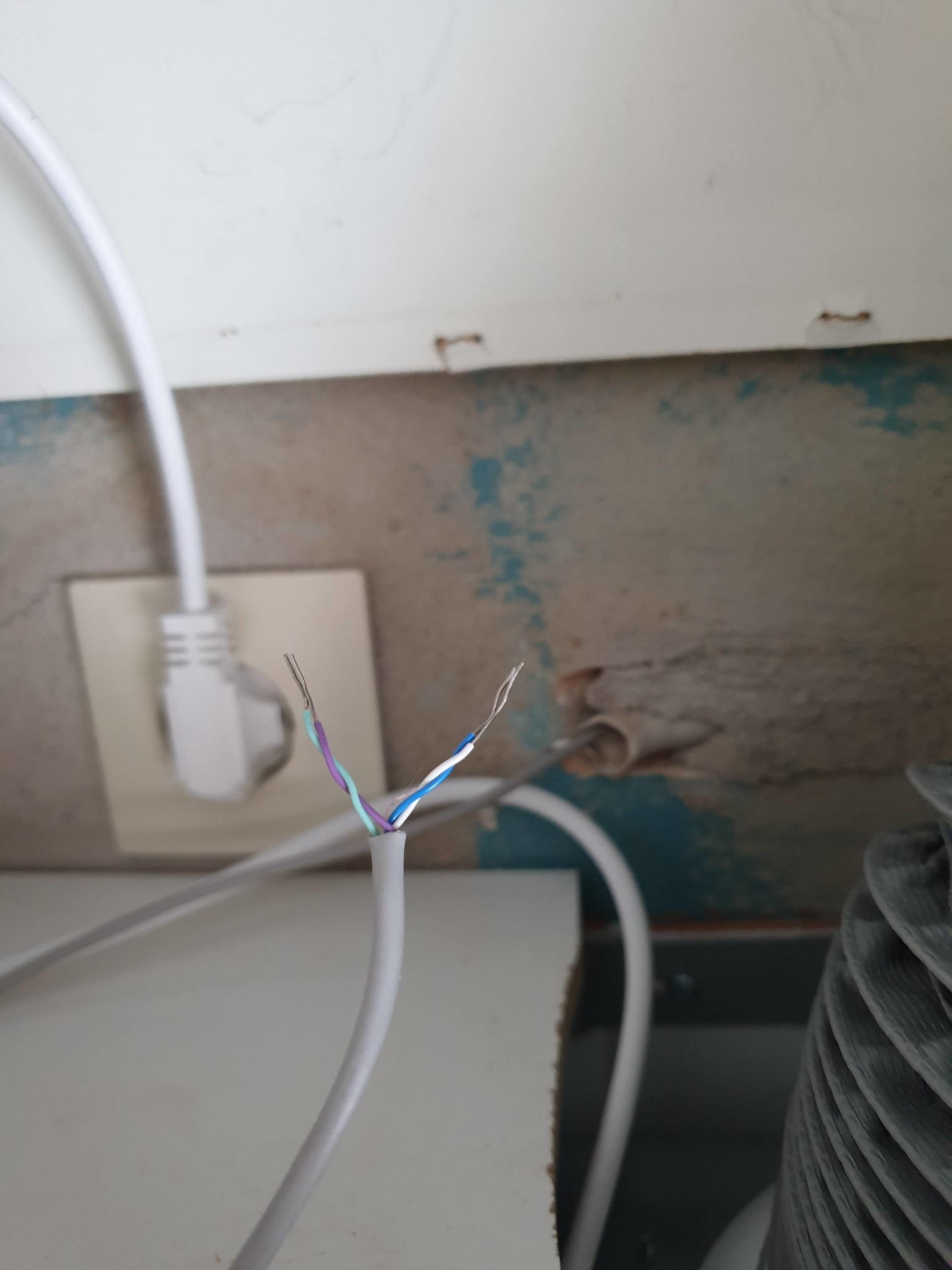 Nu till problemet; jag skulle vilja koppla ihop signalkabeln som kommer ifrån vinden (antar jag) med signalkabeln i nya spiskåpan, för att kunna trycka på spjäll knappen och få extra sug när vi lagar mat.