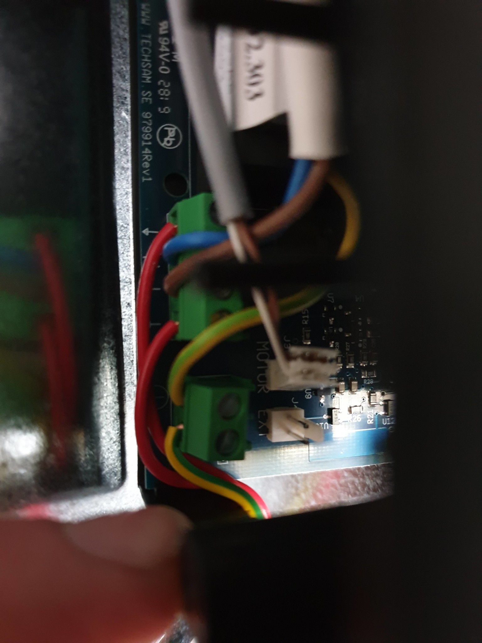 Jag har plockat isär fläkten och kommit in till själva "elcentralen", kabeln till spjället går till kretskortet märkt med motor, bredvid den finns en som det står EXT på (se bild, kanske lite suddig, förlåt )