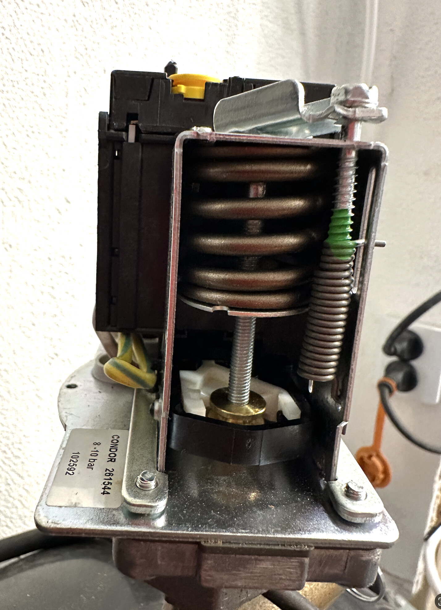 Det skrevs lite om tryckavlastningsventil tidigare i tråden. Går det ett tunt rör från ventilen där luften går in i tanken till tryckströmbrytaren? Om den är inbyggd tror jag inte att det går att fördröja den. Den gula ratten borde vara strömmen till motorskyddet. När motorn startar pyser det då under några sekunder från tryckströmbrytaren?K Ken skrev: