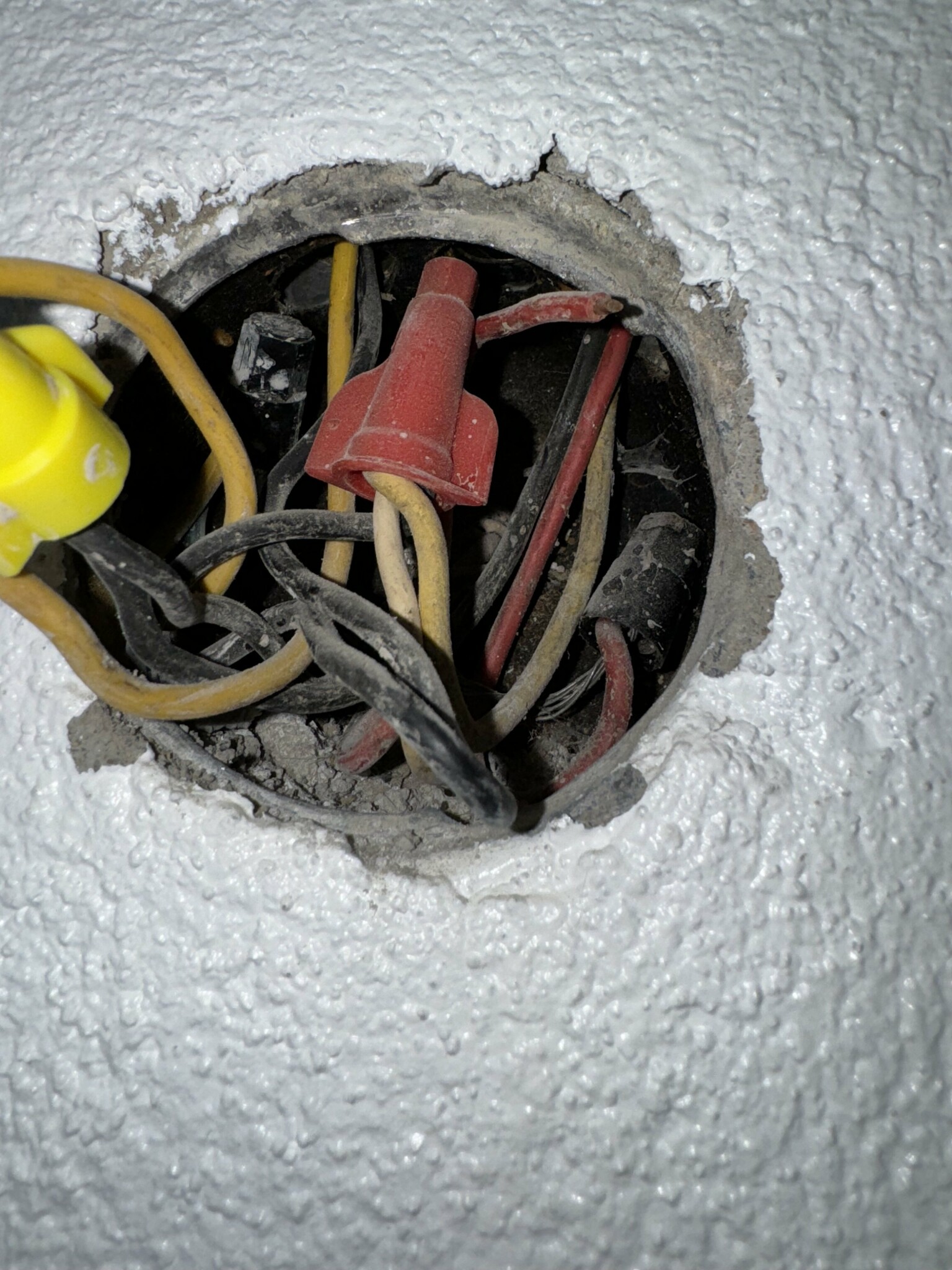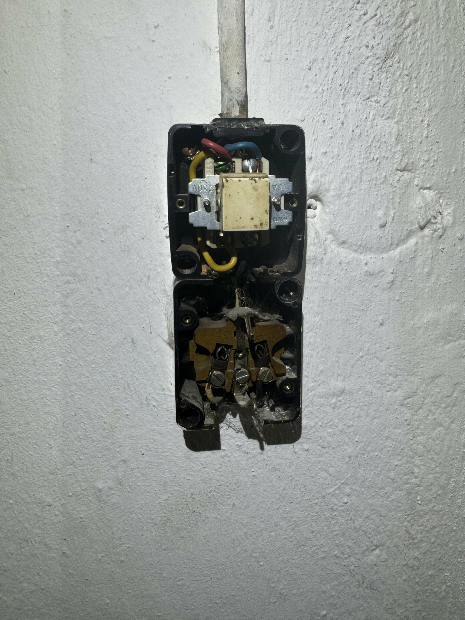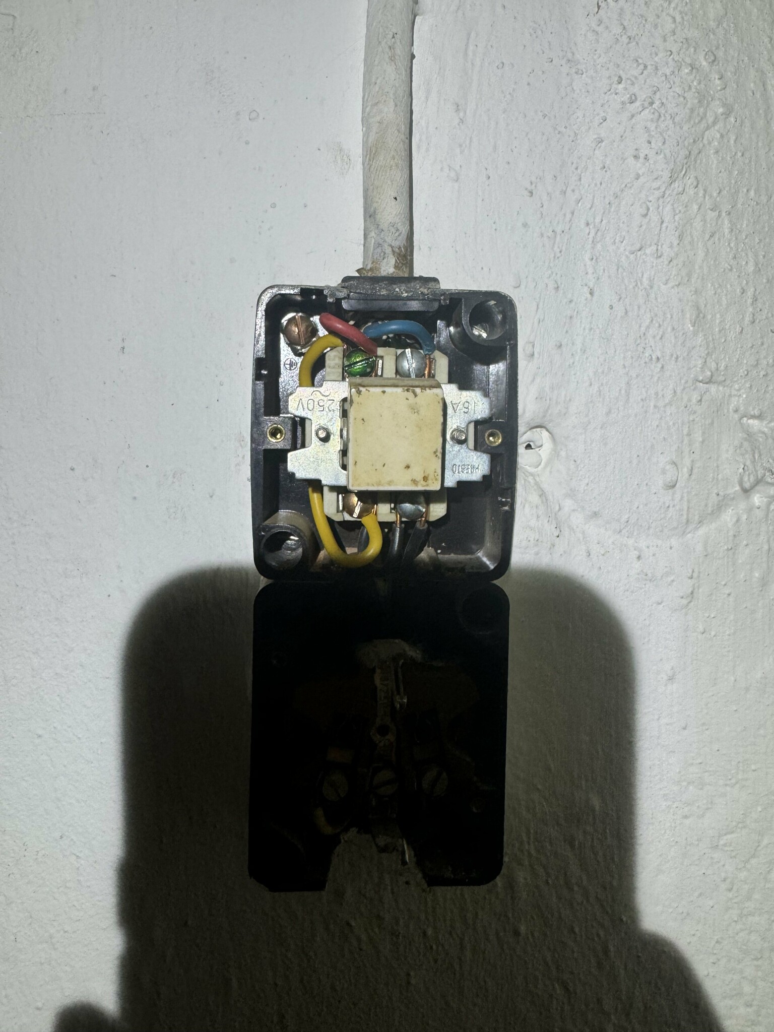 Öppnade även den andra strömbrytaren och där var röd kabel ansluten direkt till nedre plinten. Mest troligt är gul kabel skarvad på första strömbrytaren för att den var för kort.