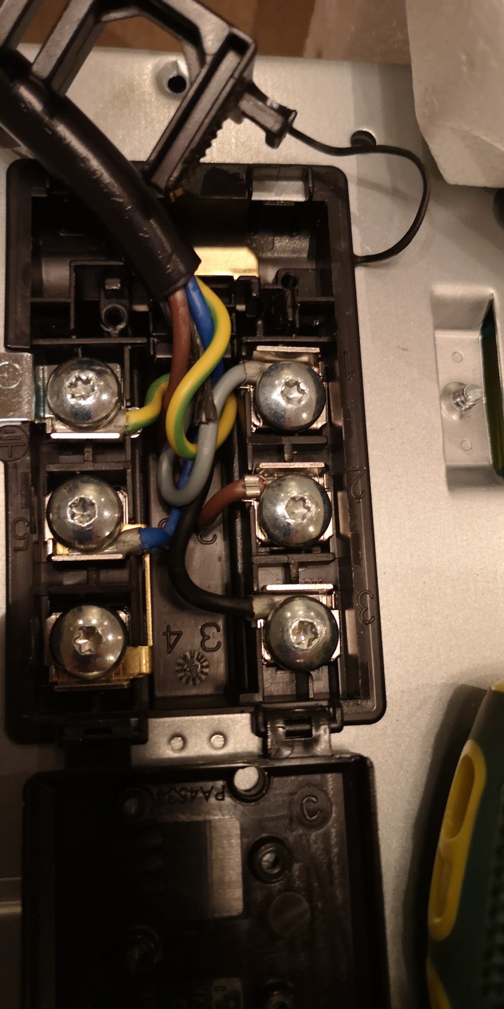 Den grå kabel som är Fas3 i Perilex kontakten kan du ”parkera” på terminal 1 som är en blindplint. Som sitter mittemot jordplinten i hällen.