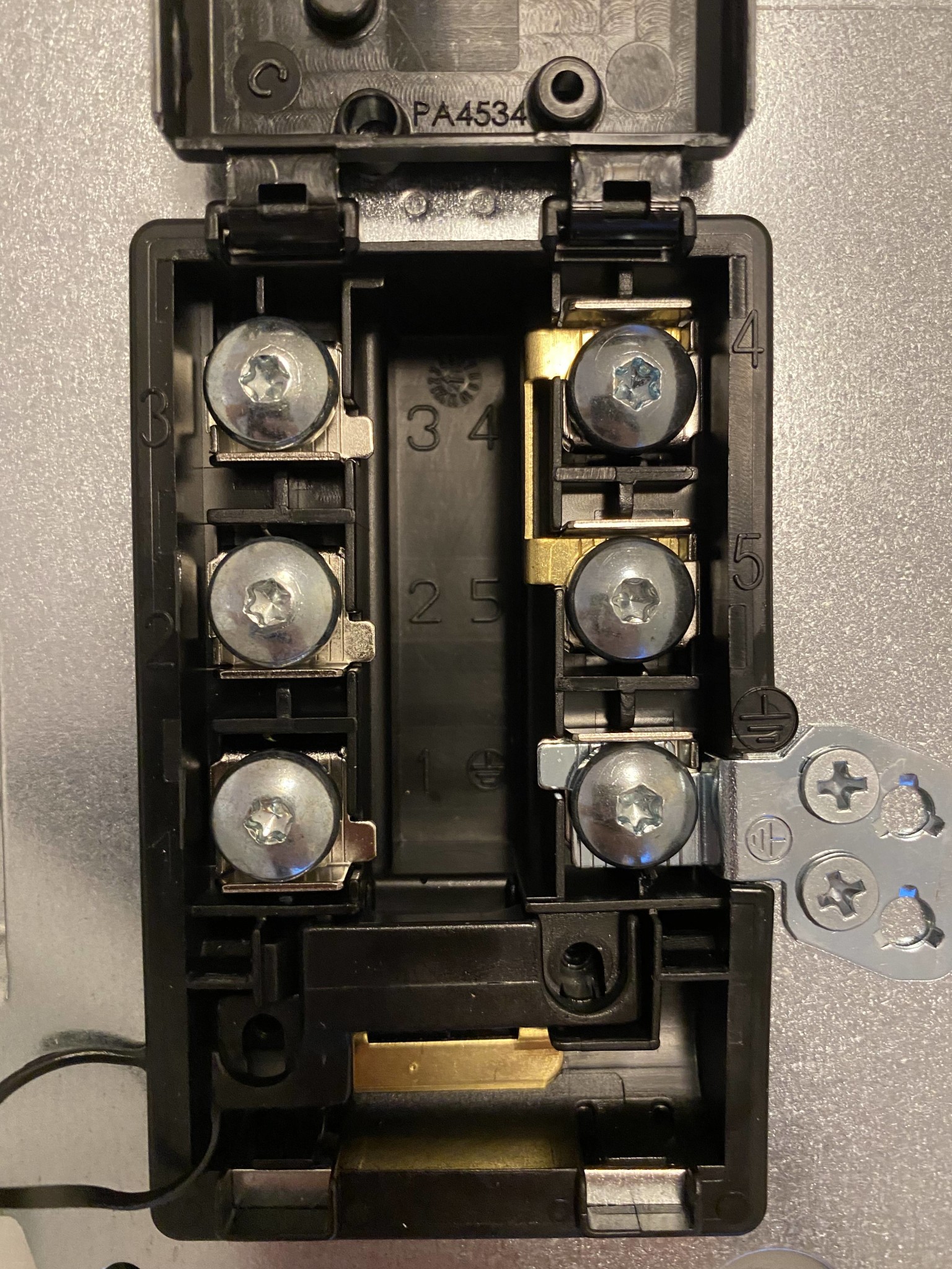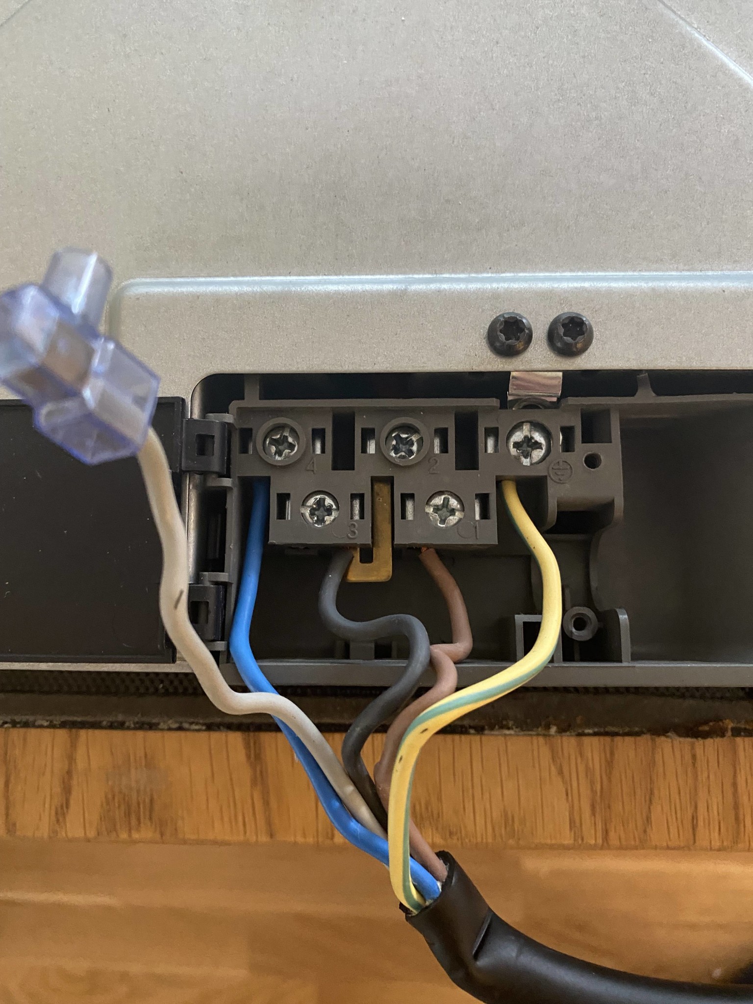 Tack jag använda kabeln från gamla hällen och lät gråa parkera i 1an enligt bilden. Men du leker att jag även kunde sätta den längst ner till vänster, under blåa (blå och grå är isåfall ihopkopplade)