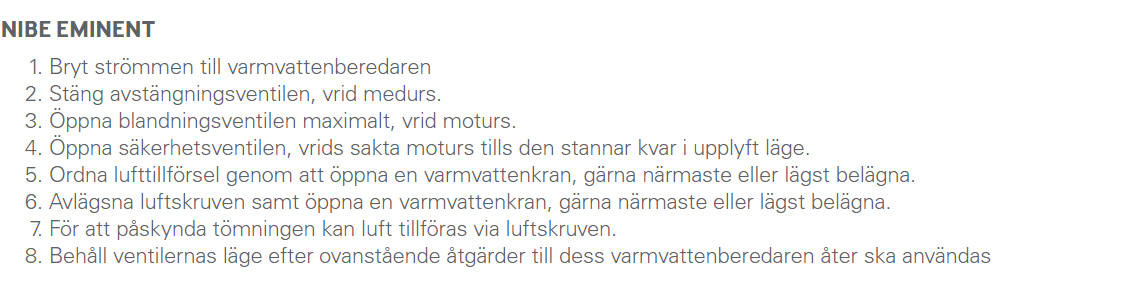 Min tanke är att tömma hela kallvattensidan från högsta punkten via varmvattenberedaren i enlighet med instruktionen för vvb. Jag följer instruktionen förutom att jag inte gör steg nr 2 (Stäng avstängningsventilen, vrid medurs). Det borde innebära att jag fortsätter mata kallvatten från systemet till vvb.