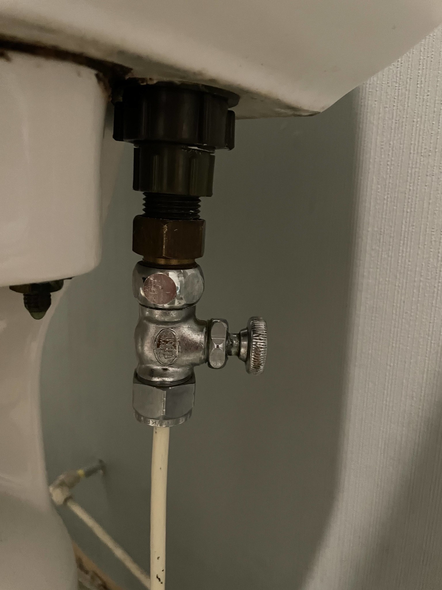 jag hade tänkt att lite snabbt koppla bort min gamla toalettstol. Snabbt gick det inte. Jag har skruvat på avstängningen medsols och den verkar fungera, har spolat ur vattnet ur toa och den fylls inte på. Jag tänkte att man skruvade av toa genom att skruva av den mörka mässingsmuttern ovan avstängning. Men den sitter som berget. Jag antar att man ska skruva av denna motsols?