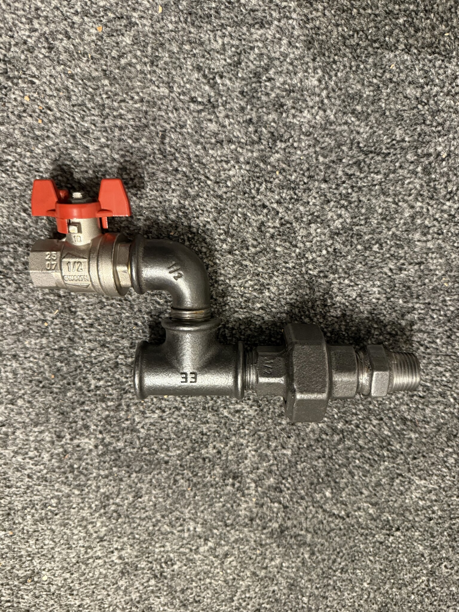 Förutom risken med att svetsa så är det lite svårt att komma åt då rören går ganska nära taket. Hittade även Vatette stål, någon form av röd klämring som man använder med deras klämringskopplingar?