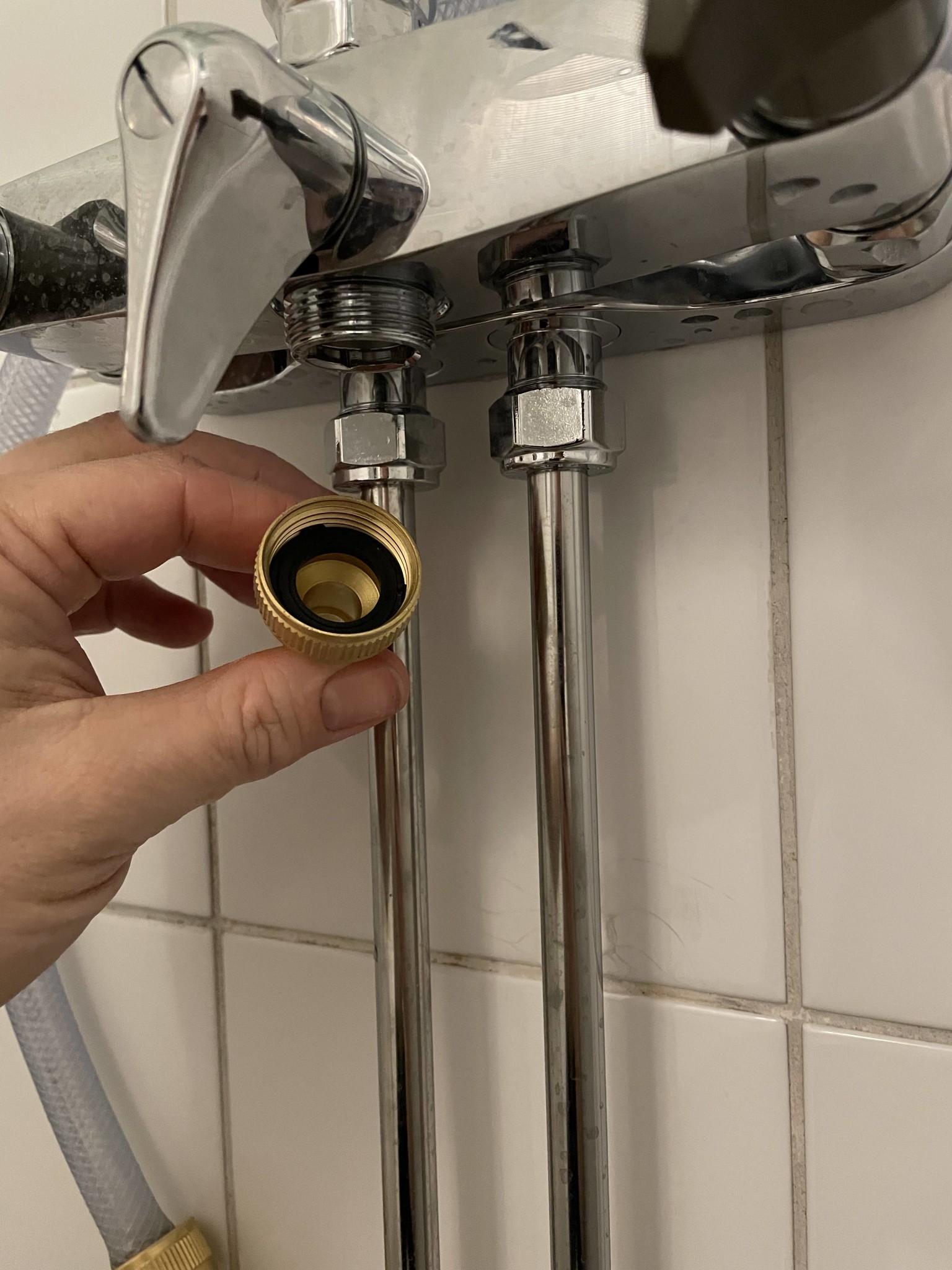 Koppla trädgårdsslang/snabbkoppling till badkarsblandare