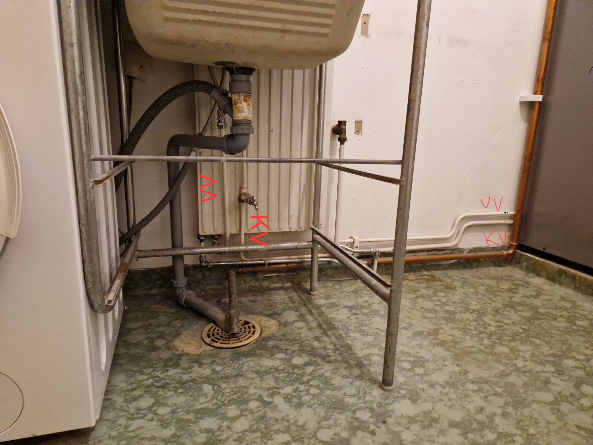 Provade att stänga huvudventilen nu (den högra bredvid mätaren på bilden), kommer fortfarande liiite vatten, men det kanske är ok?