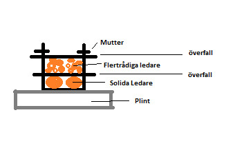 Den nya kabeln kan läggas in i samma plint, men blanda inte solida och flertrådiga ledare under samma överfall.